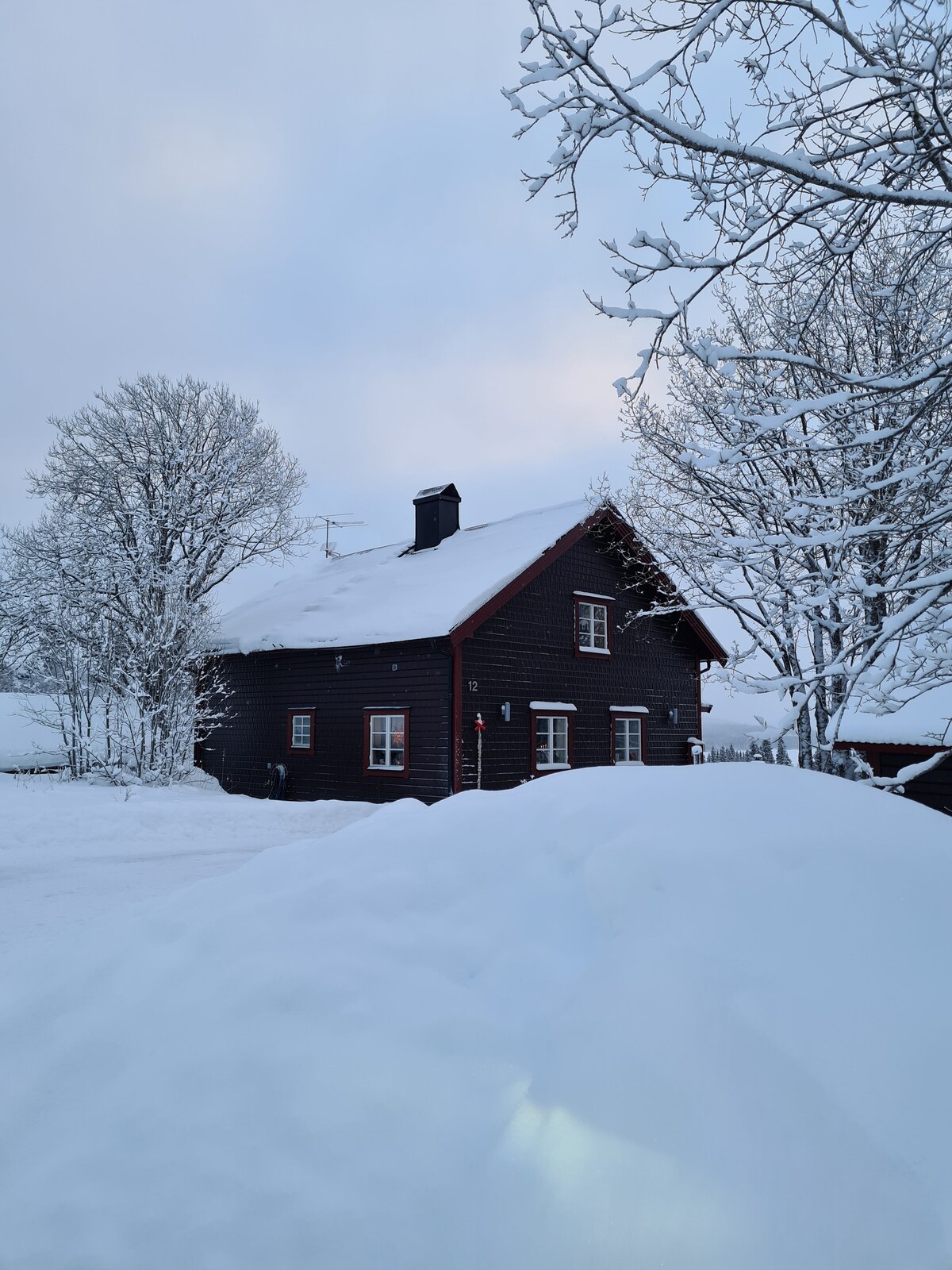 Bumalik sa kalikasan? Malayo sa trabaho at sa karamihan ng tao? Pagdating mo sa aming tuluyan, masisiyahan ka sa napakalaking espasyo at katahimikan. Sa gabi, bibisitahin ka ng usa, soro, at moose (kung hindi ka masyadong maingay) at magpapahinga ka nang buo sa sauna (kung saan matatanaw ang kagubatan) o jacuzzi. Magbasa ng magandang libro? Magagawa mo ito sa harap ng fireplace sa madaling upuan o sa couch na nanonood ng Netflix. Nagsisimula ka ng walang katapusang paglalakad sa kagubatan sa likod ng bahay.