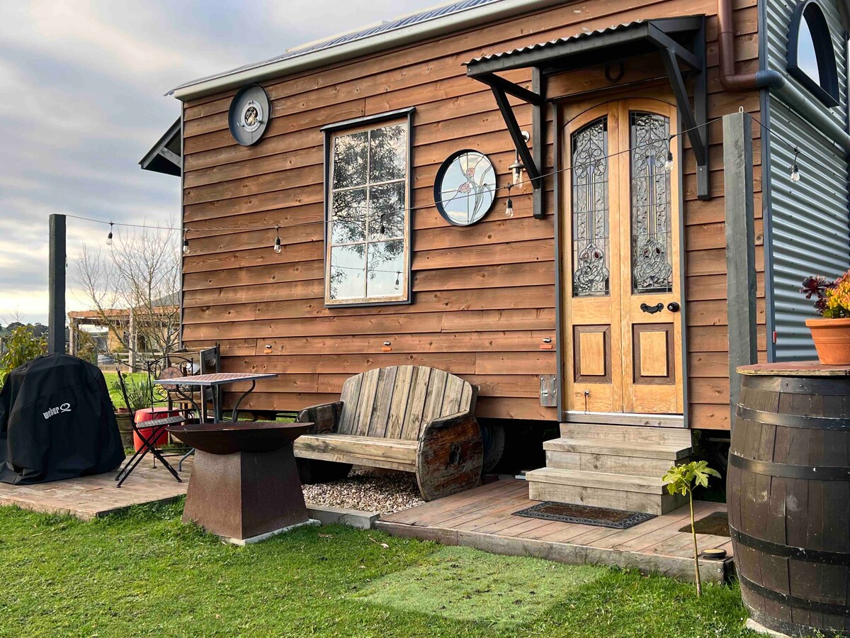 The Cedar- A one off architecturally designed ,hand made, eco friendly, solar 'Tiny House on Wheels' nestled on a horse and cattle stud in Nyora South Gippsland. Located close to the lovely village of Loch or enjoy exploring the many attractions that Gippsland has to offer and then come home to your own private getaway overlooking stunning private garden and paddocks. Access the start of the South Gippsland Rail Trail. Private cosy and warm ,enjoy the stars with a warm fire pit