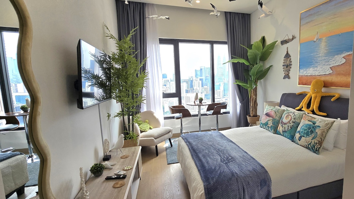 Bakit mamalagi sa suite ng Seashore Jr sa Lucentia Residence - ang pinakamagagandang tanawin ng KL - pinalamutian nang maganda na may nakakatuwang espiritu - nasa gitna ng lokasyon - malapit sa pampublikong trans - mabilis na wifi - TV na may Netflix, Apple TV, Prime Video - 2 napakarilag na pool - pampamilya na may sanggol na kuna at high chair kapag hiniling - gym, pool table, BBQ pit, piano - paradahan ng garahe - 2 max 3 ang tulog - Nakakonekta ang LalaPort Shopping Mall at ang WOW entertainment street kabilang ang grocery, tindahan ng droga at maraming restawran - sinehan GSC
