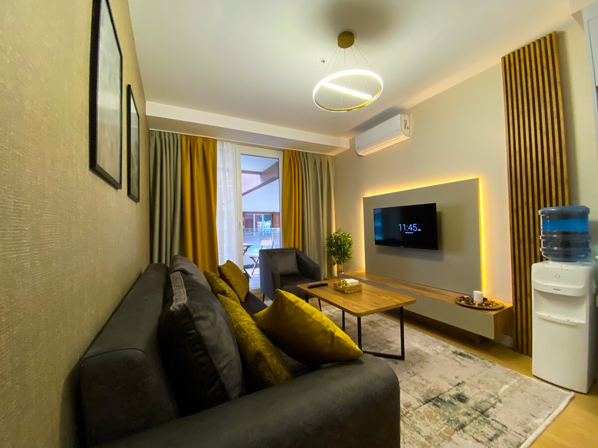 Welcome to this modern 1-bedroom apartment at, located in the vibrant Güneşli / Basin Ekspres area. 🌿This stylish apartment offers spacious living with a fully equipped kitchen, access to wellness facilities including an indoor pool, spa, sauna, and fitness center, and comes with daily free housekeeping service. We wish you a pleasant stay! ✨