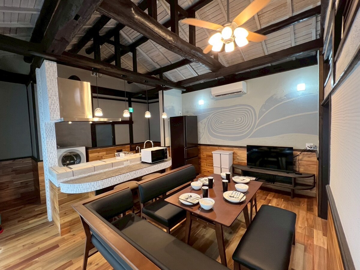 Isang ♨️ natatanging karanasan!Mamalagi sa tradisyonal na bahay sa Japan sa itaas ng pampublikong paliguan na may kasaysayan na mahigit 70 taon 🏠 Sa Lungsod ng Shunan, ang Yamaguchi Prefecture, ang ikalawang palapag ng isang matagal nang itinatag na pampublikong paliguan, na nasa negosyo nang mahigit 70 taon, ay na - renovate upang lumikha ng isang natatanging pribadong tuluyan!Makaranas ng tuluyan na masisiyahan lang sa lugar na ito, kung saan pinagsasama ang kagandahan ng lumang bahay, modernong kaginhawaan, at espesyal na karanasan sa pampublikong paliguan.Tumatanggap kami ng iba 't ibang bisita, mula sa mga business traveler hanggang sa mga mag - asawa, pamilya, at pangmatagalang bisita! ✨ Mga feature at atraksyon Espesyal na karanasan sa pamamalagi sa🛁 pampublikong paliguan Ang pinakamalaking atraksyon ng property na ito!Sa panahon ng iyong pamamalagi, maaari kang maligo sa pampublikong paliguan sa unang palapag nang isang beses nang libre (limitado sa mga oras ng negosyo). Bukod pa rito, isang komplimentaryong espesyal na yari sa kamay na juice na gawa sa mga lokal na prutas! Modernong dekorasyon na gumagamit ng🏡 lumang bahay Maaari kang magrelaks sa mataas na kisame na may mga kahanga - hangang mainit - init na kahoy na sinag at ang naka - istilong interior na nagsasama ng mga elemento ng Japan. Ang Japanese - style na kuwarto ay isang nakakarelaks na lugar na may mga makukulay na Ryukyu tatami mat. Mga pasilidad at amenidad na may kumpletong 🥄kagamitan Available ang libreng paradahan.Available ang high - speed na Wi - Fi. Kumpleto ang kusina sa mga pinggan, refrigerator, microwave, at maginhawang ganap na awtomatikong washing machine (na may dryer), kaya mainam ito para sa mga pangmatagalang pamamalagi. May TV din sa sala.