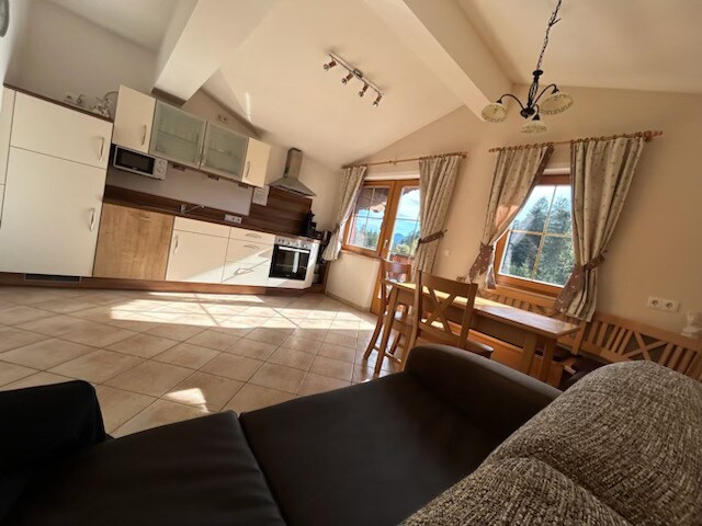Welcome to Apartment 14, your perfect retreat for a relaxing stay for up to 2 people. The 40 m² apartment is located on the second floor and features a spacious bedroom with a double bed, a fully equipped kitchen, and a TV. The bathroom includes a shower and toilet. Enjoy the comfort of your own accommodation and relax in a peaceful environment, as well as in the wellness area with sauna, infrared cabin, or in the fitness room. The balcony offers breathtaking views of the greenery and mountains.