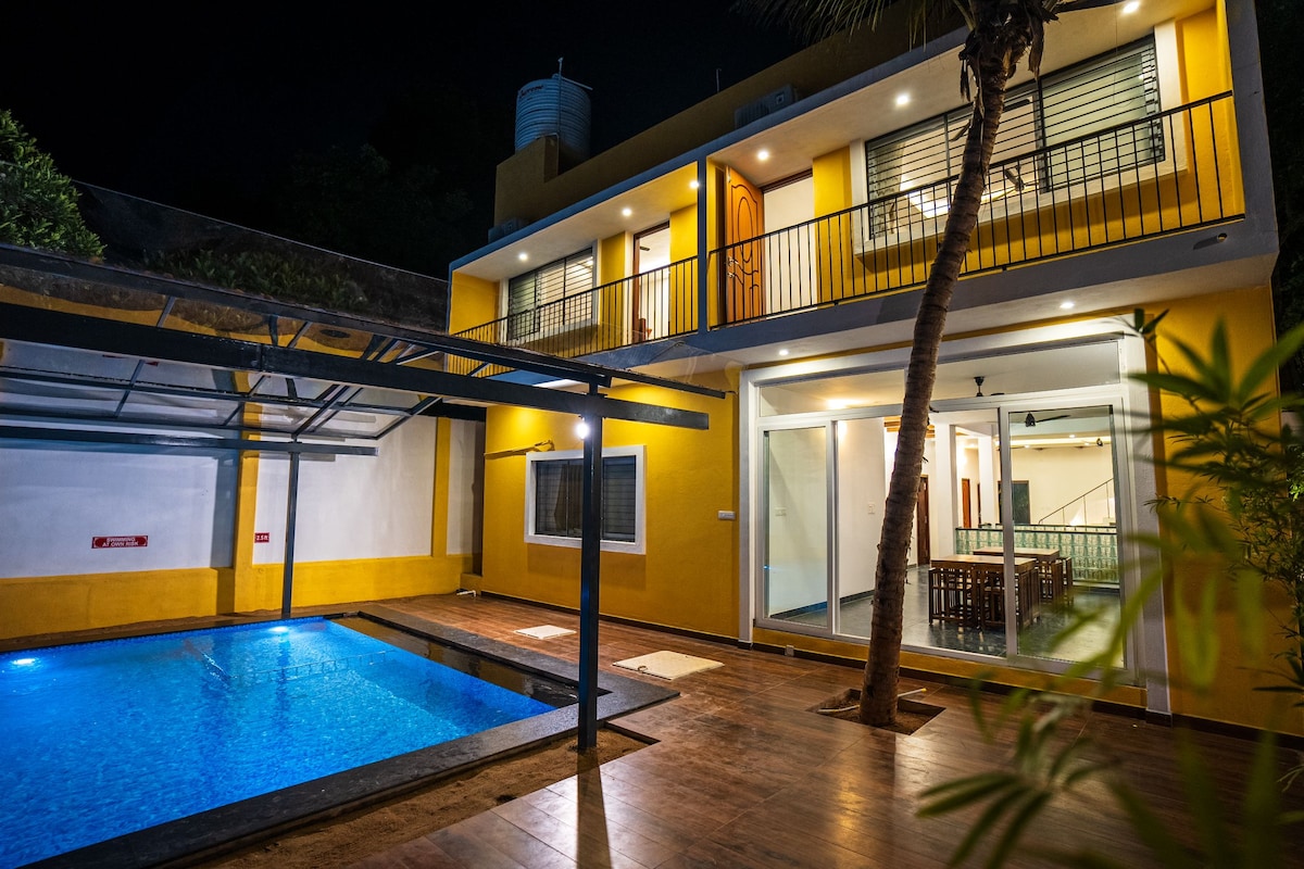 Casa Meena Villa a Beach Front family Villa At Serenity Beach, Matatagpuan ito 10 minutong biyahe mula sa Pondicherry Main city at iniimbitahan nito ang mga bisita na mag - enjoy sa patyo. Malapit na ang paaralan ng Pondicherry Surf. Napakalapit ng villa na may 2 silid - tulugan sa Rock Beach, kasama sa property ng Casa Meena Villa ang Swimming Pool at balkonahe, Dining space na may Table, kasama ang mga kaginhawaan tulad ng Air Conditioner pati na rin ang mga pasilidad ng media tulad ng Smart TV, Naka - attach na banyo at shower, board game, Barbeque, atbp.