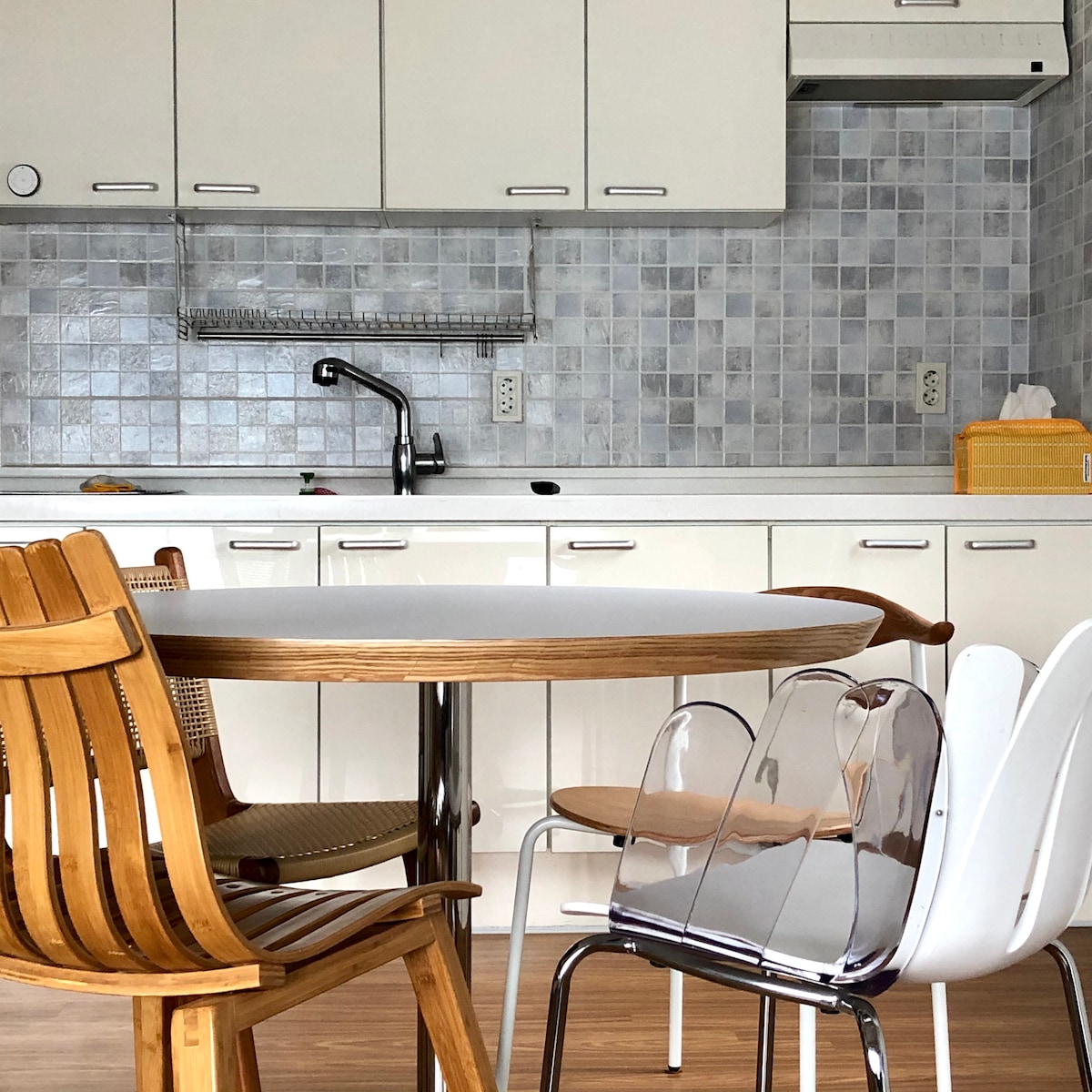 Ito ay isang village house na matatagpuan sa isang lugar na tinatawag na Dundeok sa kanlurang baybayin ng Geoje Island. Isa itong village house na personal na inayos at pino ng mag - asawang host sa loob ng mahabang araw. Ito ay isang emosyonal na tuluyan na ginawa ang hitsura ng lumang bahay hangga 't maaari at may interior sa Europe na may mga materyal na eco - friendly. Masayang - masaya ang mababang bubong at ang estruktura ng natatanging lumang bahay at mararamdaman mo ang pakiramdam ng isang bahay sa nayon. Matatagpuan ito sa gitna ng nayon kung saan matatagpuan ang tanggapan ng Dundeok - myeon, at may Hanaro Mart, Chinese Restaurant, Hot Place Handmade Burger, Convenience Store, Chicken Restaurant, Hot Place, Prop Shop, 5 Blue Ribbon Cafes, at iba pang restawran, para magamit mo ang lahat ng amenidad na ito nang naglalakad. May estuwaryo na papunta sa dagat sa loob ng 3 minutong lakad, Puwede kang maglakad sa promenade papunta sa dagat habang tinitingnan ang magandang estuwaryo. Ito ay isang lugar kung saan maaari mong maramdaman ang pagiging sensitibo ng isang tahimik at mainit - init na nayon sa kanayunan. Magandang lugar din ito para tuklasin ang mga sikat na atraksyong panturista sa malapit. Ang eksaktong lokasyon ng listing ay Ito ay 6, Hadun 3 - gil, Dundeok - myeon, Geoje - si, at ipapaalala namin sa iyo sa sandaling ma - book ito. Mag - check in nang 3pm Mag - check out nang 12:00 AM