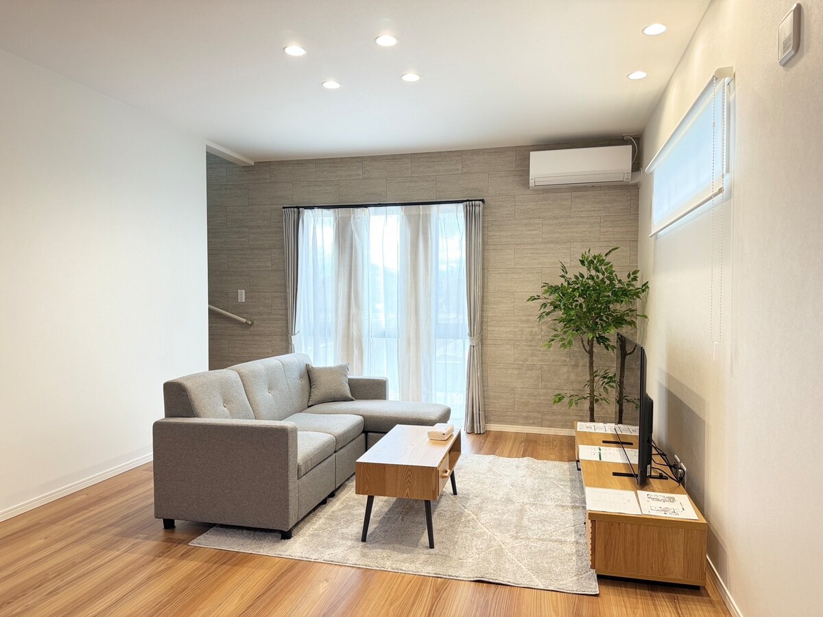 Nag - aalok kami ng bagong itinayong dalawang palapag na bahay sa tahimik na residensyal na lugar ng Miyoshi, 20 minutong biyahe mula sa Kumamoto TSMC, para sa isang grupo kada araw. Bumibiyahe ka man para sa negosyo o kasiyahan, may komportableng lugar kami kung saan puwede kang mamalagi na parang nakatira ka. Bukas at pinagsama - sama ang sala at silid - kainan.May dressing space ang bawat kuwarto at maluwang ang mga banyo. Mayroon ding washing machine, refrigerator, microwave, at mga kagamitan sa pagluluto at pampalasa, na ginagawang perpekto para sa mga pangmatagalang pamamalagi at self - catering party. Ganap na nilagyan ng wifi at TV, may paradahan para sa 2 -3 kotse. Maraming supermarket at restawran sa malapit, at ang Yume Mall Miyoshi, na binuksan noong 2024, ay humigit - kumulang 5 minutong biyahe. Inirerekomenda para sa: Mga business traveler sa ✔ TSMC Pamamalagi ng ✔ pamilya o grupo Para sa mga nagkakahalaga ng access mula sa ✔ Kumamoto Airport (humigit - kumulang 30 minuto sa pamamagitan ng kotse) Sana ay magkaroon ka ng kasiya - siyang oras sa iyong sariling "iba pang bahay" na pinagsasama ang init at pagiging praktikal.