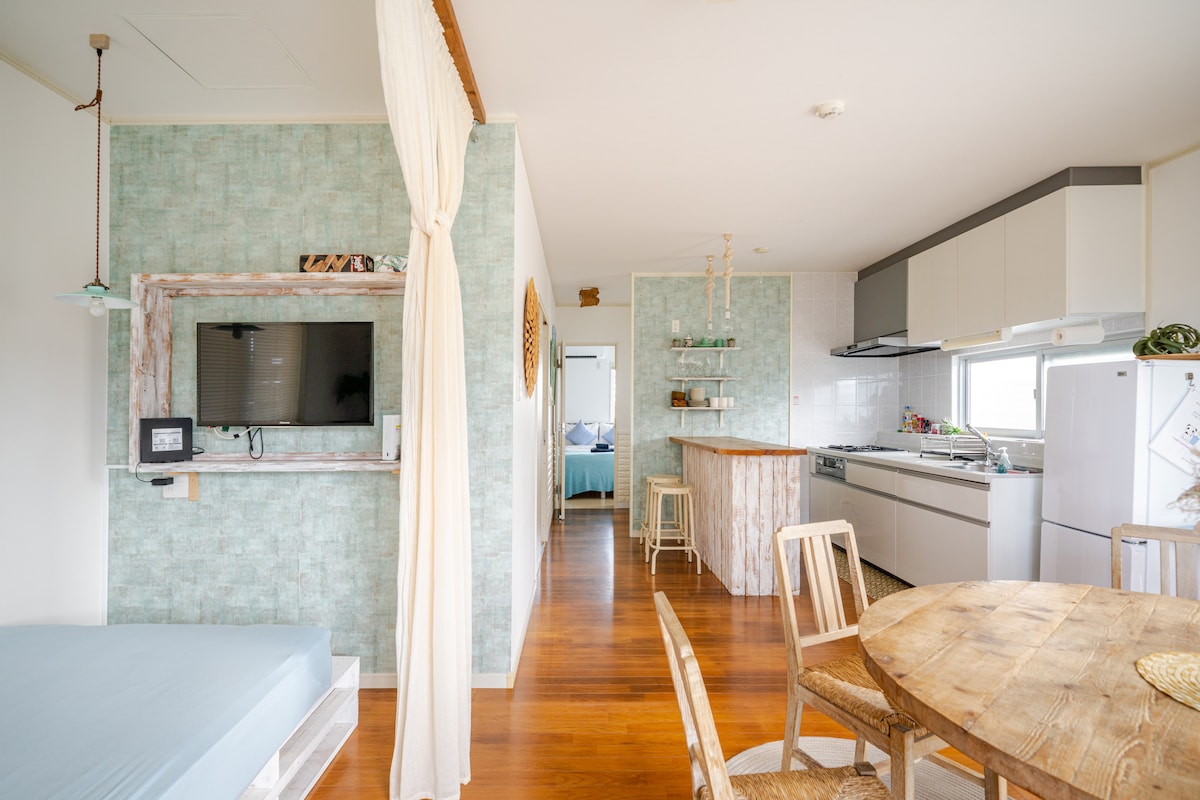 🌴Welcome sa YomitanTerrace! Mga nakakamanghang paglubog ng araw🌇 mga tanawin ng emerald ocean sa Okinawa! Perpekto para sa mga mag - asawa, pamilya at kaibigan. 🏠Pribadong Tuluyan Buong ikalawang palapag para sa hanggang 4 na bisita. 2 single bed + sofa bed at futon. 🍳Kusina at BBQ Mga kasangkapan sa pagluluto. mga gamit sa kusina at kubyertos. BBQ (¥2,000, mag-book nang mas maaga). 🛁Banyo at Labahan Mga tuwalya, hair dryer, washer, at dryer. 🌐Libangan Libreng Wi - Fi YouTube at Netflix 🚗Paradahan 2 espasyo. Maaliwalas, pribado, at perpekto para magrelaks sa Okinawa!