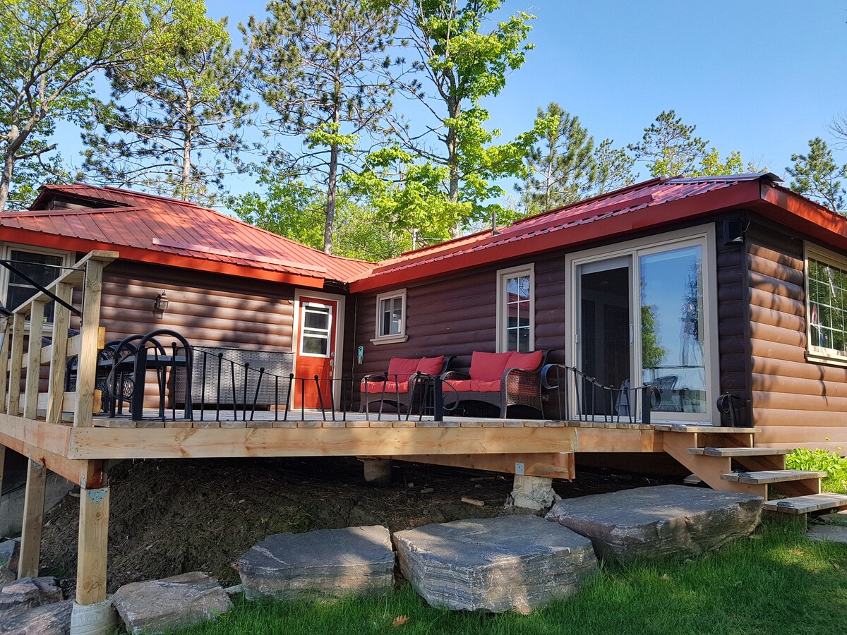 Tumakas sa isang tahimik na bakasyunan na matatagpuan sa kaakit - akit na Canadian Shield. Nag - aalok ang natatangi at na - renovate na 1950s 3 - bedroom cottage na ito ng patuloy na mga nakamamanghang tanawin ng lawa. Sa pamamagitan ng maingat na pinapangasiwaang dekorasyon, mga modernong amenidad para sa malayuang trabaho, kumpletong kusina, at mga fireplace sa atmospera, ang hiyas sa tabing - dagat na ito na may 1.6 acres ay nagbibigay ng sopistikadong kanlungan ng pamilya. Masiyahan sa pribadong pantalan at nakamamanghang baybayin, na lumilikha ng mga mahalagang alaala sa komportable at masarap na bakasyunang ito. [Numero ng Lisensya str -2025 -17]