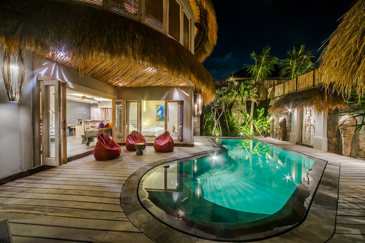 Tangkilikin ang iyong mga romantikong pribadong oras sa isang marangyang complex, malapit sa isang mahusay na seleksyon ng mga world - class cafe, restaurant at beach club. Ngunit ganap na nakatago sa isang tahimik at tahimik na kapitbahayan ng villa. Nagtatampok ang villa na ito ng ensuite bathtub at nag - aalok ng perpektong dip - in pool. Tangkilikin ang iyong lumulutang na almusal sa ilalim ng mga panel ng kahoy na may liwanag ng araw na dahan - dahang bumubuhos. Chillax sa bean bag o sun lounger sa iyong pinili habang binababad ang tanawin ng hardin.