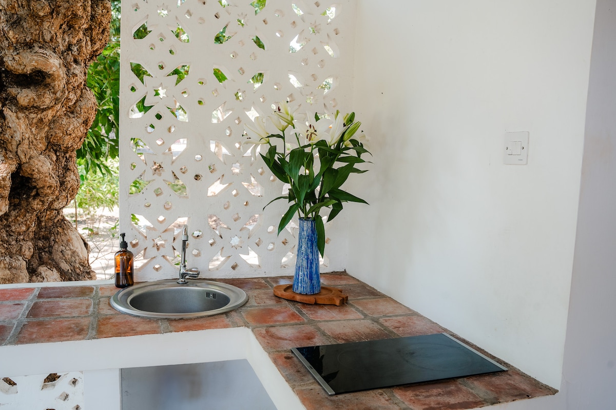 Nasa aming 3 acre na beachfront property ang Beach Cottage, na nasa loob ng tropikal na hardin na ilang hakbang lang mula sa beach. Nakakaramdam ng pagiging natatangi ang lugar dahil sa tanawin ng karagatan na makikita sa likod ng mga puno ng Baobab. Nakakapagpahingang disenyo, pribadong pool, at talon ang cottage kaya maganda itong bakasyunan. Bagay ito para sa mga magkasintahan o naglalakbay nang mag‑isa na gustong magpahinga sa tabi ng beach.