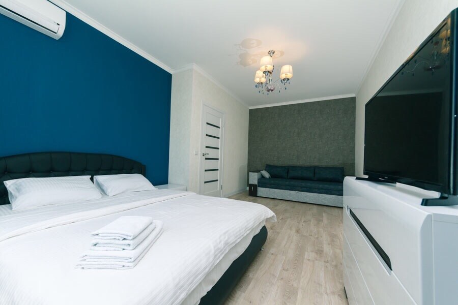 barasport city apartments Studio gold style - designer apartment sa pinakasentro ng kabisera. Matatagpuan ito sa isang bagong elite na gusali sa Pechersk, 5 minutong lakad mula sa metro at 15 minuto mula sa istasyon ng tren. Ang mga pangunahing lokasyon ng negosyo at turista ng lungsod ay nasa maigsing distansya. Nag - aalok ang bagong Studio gold style apartment na may lawak na 30 metro kuwadrado ng malaking double bed, na may mataas na sopistikadong headboard, komportableng orthopedic mattress, kumot, hypoallergenic pillow. Sa apartment na ito, magkakaroon ka ng mga snow - white bedding, magagandang tuwalya at mga branded na toiletry! May kumpletong kusina, na may ref, electric stove, microwave, takure at lahat ng kinakailangang kagamitan. Mayroon ding gumaganang wardrobe na may ligtas na lugar ng trabaho na may TV at Wi - Fi. Nagtatampok ang pinagsamang banyo ng maluwag na shower, pampainit ng tubig, at hair dryer. Sa pagtingin mula sa mga bintana ng apartment sa itaas na palapag ay makikita mo ang isang kahanga - hangang malalawak na tanawin ng lungsod sa estilo ng Barasport.