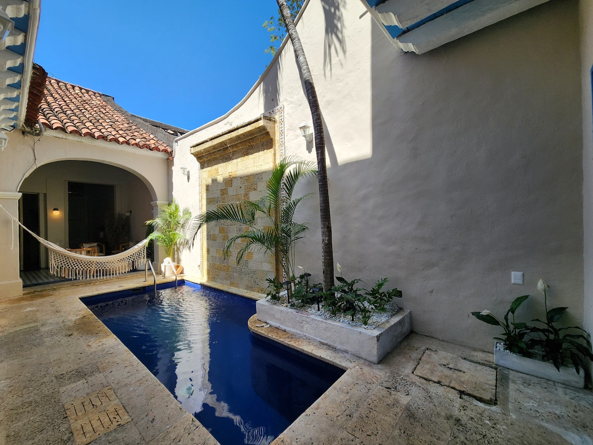 Beautiful three bedroom, four bathroom remodeled apartment with private pool inside Cartagena's Old Town. Maximum capacity of 7 guests. Professionally managed. The property includes a large living room, dining area, kitchen, outdoor patio and rooftop deck with private pool overlooking the neighborhood. Daily housekeeping. Concierge services available. Located in the lively San Diego neighborhood, just a few blocks away from Cartagena’s best plazas, restaurants, and shops.