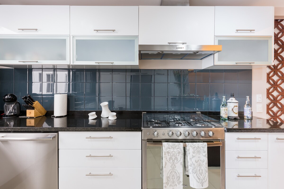 Magluto ng almusal sa kusina na may mga eleganteng tile floor at shabby - chic touch. Kumain sa isang live - edge table sa ilalim ng modernong globose light fixture. Tumugon sa isang libro sa isang nakakarelaks na sofa sa gitna ng mga mayamang hardwood at floor - to - ceiling window ng apartment na ito. Napakalinis at bagong ayos na apartment. Pinapahalagahan namin ang pagbibigay ng pinakamahusay na kalidad ng mga materyales para maging komportable ang iyong pamamalagi. Available ang heater o fan. Maganda at komportableng apartment, na matatagpuan sa gitna ng Colonia Hipodromo Condesa. May wi - fi at mabilis na internet. Bagong ayos, na may dalawang malalaking silid - tulugan at banyong may shower na may mainit na tubig. Ito ay isang perpektong lugar para magrelaks pagkatapos ng isang matinding araw sa kapana - panabik na kapaligiran ng Mexico City. Isang buong kusina na may refrigerator / freezer, gas stove / oven. Sa ibabang bahagi ng gusali ay may labahan. Makikita ang mga bintana sa lahat ng kuwarto, lalo na ang bintana sa sala at silid - tulugan na may mga puno ng kolonya na nagbibigay dito ng kaakit - akit na espasyo. Ito ay isang kapitbahayan habang naglalakad. Ito ay kaakit - akit, ligtas, puno ng mga restawran, cafe at libangan. Dalawang minutong lakad ito papunta sa Parque México at maginhawa para sa pampublikong transportasyon. 10 minutong lakad ang layo ng Chilpancingo metro station. Ang gusali ay matatagpuan sa isang estratehikong punto, dahil naglalakad ka ng ilang hakbang makakahanap ka ng cafe, bar, restawran, sinehan, supermarket, at pampublikong transportasyon. Available ako at maaaring makipag - ugnayan sa pamamagitan ng mga mensahe sa pamamagitan ng telepono, email o pagpapadala ng mensahe sa Airbnb. Makikita sa La Condesa, ang apartment ay isang lakad lamang ang layo mula sa ilan sa mga pinakamasiglang restawran, boutique, at pamilihan ng Mexico City. Maglakad papunta sa kalapit na Bosque de Chapultepec para tuklasin ang mga museo, zoo, at botanikal na hardin ng parke. Nasa maigsing distansya ang access sa lahat ng pampublikong sasakyan. 10 minutong lakad ang layo ng metro station Chilpancingo, 5 minuto ang layo ng pribadong taxi stand, pati na rin ng Ecobici bicycle exchange station. Bilang karagdagan sa 5 bloke, maaari mong kunin ang TuriBus na nag - aalok ng mga turista na makilala ang Mexico City sa isang praktikal na paraan.