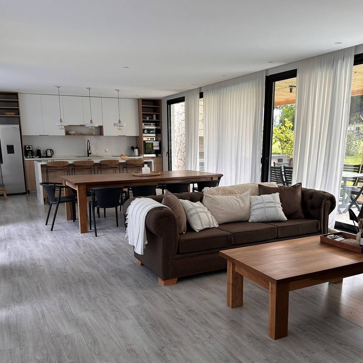 TINGNAN ANG PRESYO X BUWAN o matatagal na pamamalagi. Bahay sa 1 palapag sa gitna ng mga pine tree at libreng ibaba,c 2 suite at 3 sleeps higit pa,c 2 c/u bed na maaaring gawin double ( ideal 5 couples). 4 paliguan, (2 compartments), 3 Smartv, directv, 4 AA cold - heat, ceiling fan sa 5 silid - tulugan at covered grill,. Lahat ng amenidad na wifi, washing machine, dishwasher, microwave, electric oven, coffee maker, pava eléct, blender. Ibinibigay ang Savanas.CONSULTE X TAUNANG ALQ
