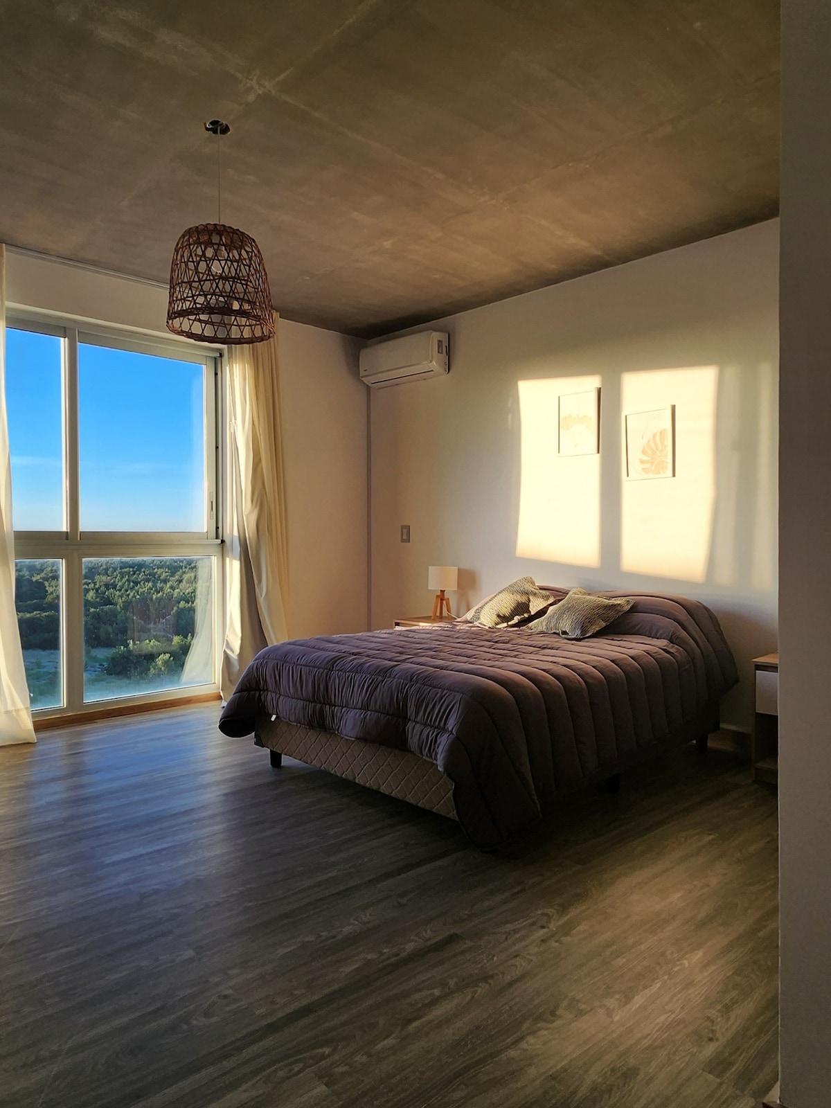 Mag-enjoy sa katahimikan at pagiging eksklusibo ng Costa Esmeralda sa maliwanag na apartment na ito sa ikaapat na palapag, na may malalaking bintana at magandang tanawin ng kagubatan at dagat. Idinisenyo ang tuluyan para maging komportable at maginhawa ang pamamalagi mo. May electronic lock na may code para sa mabilis at ligtas na pagpasok. Pinagsama ang sala at silid-kainan at may labasan papunta sa pribadong balkonahe na may mesa at ihawan para makapag‑asado habang nakatanaw sa dagat.