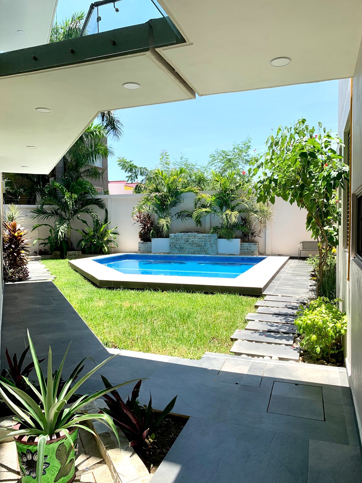 Isang cool, modernong apartment para sa hindi malilimutang bakasyon kasama ng pamilya o para magtrabaho sa matalinong pagtatrabaho. Pinalamutian ng magagandang detalye na magpaparamdam sa iyo na nasa sarili mong bahay ka. Nilagyan at may mga de - kalidad na amenidad: internet 200mbps, washer/dryer, smart tv, mainit na tubig at air conditioning. Matatagpuan ito 2 minutong lakad mula sa Santa Cruz Beach at malapit sa mga restawran, tindahan at merkado. Mayroon din itong karaniwang rooftop kung saan makikita mo ang karagatan.
