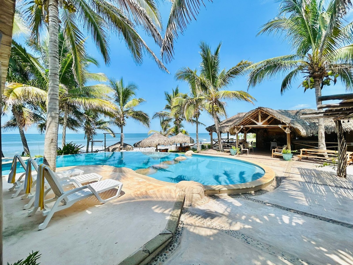 Matatagpuan kami na nakaharap sa dagat sa Celestino Gazca Beach, isang liblib na lugar na may sariwang pagkaing - dagat, kamangha - manghang sunset at malapit sa kalikasan. Ang beach ay isang santuwaryo ng mga sea turtle, na nagtataguyod ng responsable at napapanatiling turismo para sa proteksyon ng kapaligiran. Mayroon kaming palapa na may mga duyan, bar, muwebles sa labas, at pool na may tubig sa dagat - ganap na natural, mas mainam para sa kalusugan ng mga may sapat na gulang at bata.