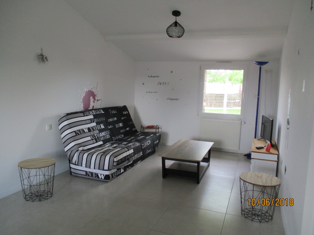 Studio ng 30 m² na magkadugtong sa aming bahay,na may malayang access. 20 minuto mula sa Nantes sa pamamagitan ng kotse at 3.5 km mula sa Mauves train station (Nantes 13 min). Malapit sa sentro ng lungsod kasama ang lahat ng tindahan; panaderya, karne, restawran, grocery store, mall. Para sa 2 bisita, double bed, at posibilidad para sa isa pang tao( sofa bed), hihilingin ang dagdag na singil). Maaliwalas na apartment para sa 2 biyahero malapit sa Nantes, sa ubasan.