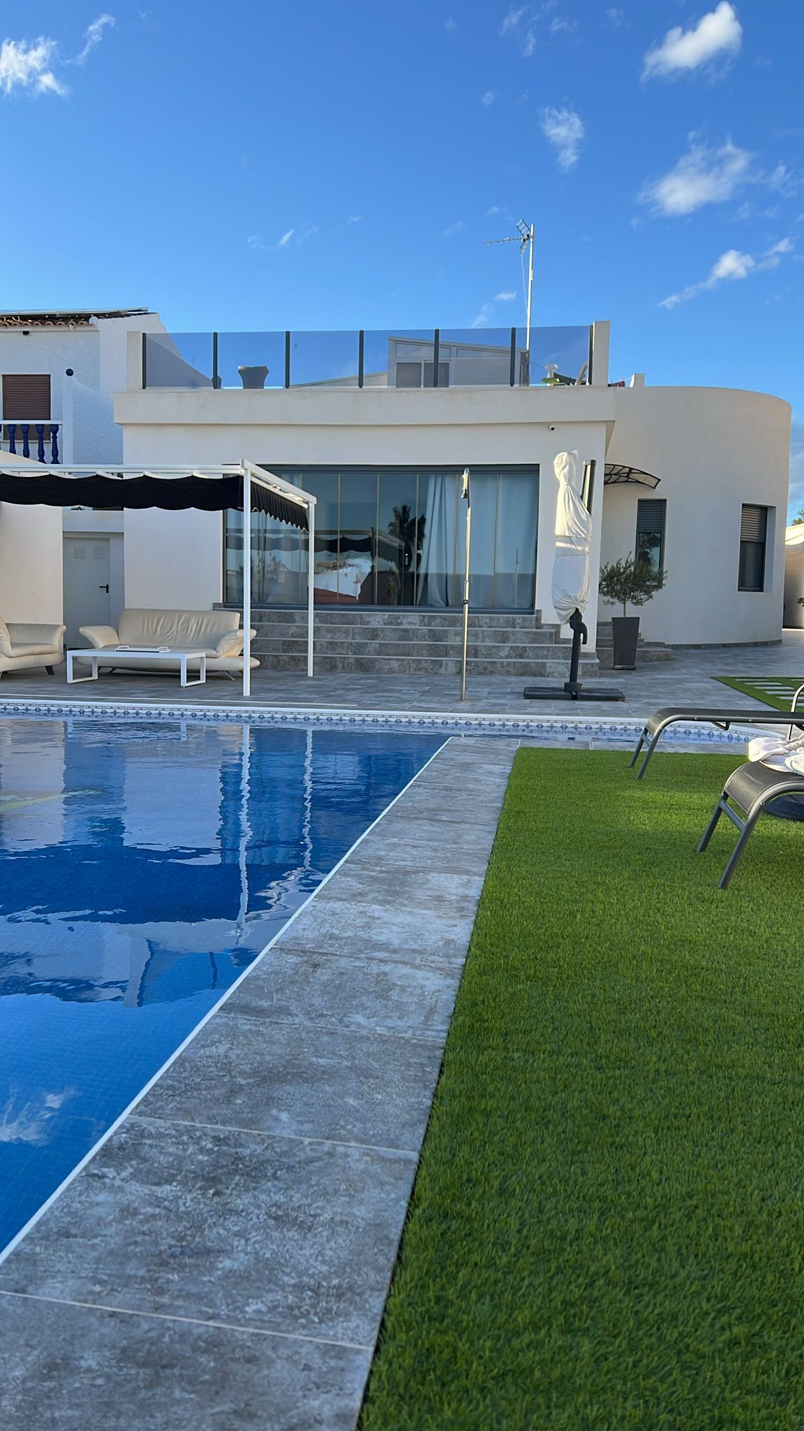 Experience serenity and style in our tranquil apartment, featuring spacious balcony area ideal for relaxation and enjoying stunning war Spanish nights and out door pool. Inside, find two cozy bedrooms with one of them featuring double bed and second two single beds for a restful sleep. Air conditioning in all rooms ensure comfort for all guests. Welcome to your perfect Airbnb getaway.