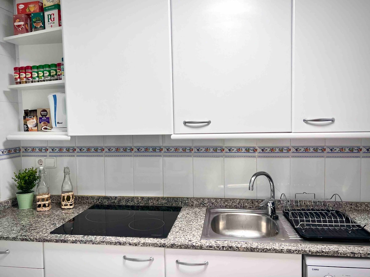Apartamento VIP recién reformado y amueblado a 700m del mar con un dormitorio y sofá-cama. Todo lo necesario para una pareja. Con smartTv en comedor y habitación de 55”. 1 baño totalmente equipado y con todas las comodidades (secador de mano, productos de aseo)... Wifi por todo el espacio. Salón comedor con zona de descanso muy luminoso , con preciosas vistas . Cocina completamente equipada, servicio de café y té, lavadora-secadora, tostadora, vitrocerámica, horno microondas, nevera.