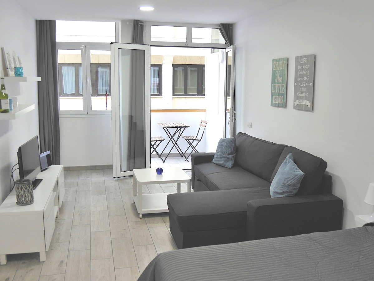 ►A 1 minuto andando de la playa de Las Canteras, en las Palmas de Gran Canaria. ► Salón con sofá-cama y mesa de comedor ► Dormitorio doble ► Cocina equipada con inducción, horno, nevera, micoondas, lavadora-secadora, así como todo lo esencial para cocinar. ► Cerradura electrónica. ► Detector de humos. ► Cerca de todo tipo de servicios (bares, terrazas, restaurantes, supermercados) ► Muy bien comunicado con todas las líneas de autobuses de la ciudad, aeropuerto y puerto ► Edificio muy tranquilo.