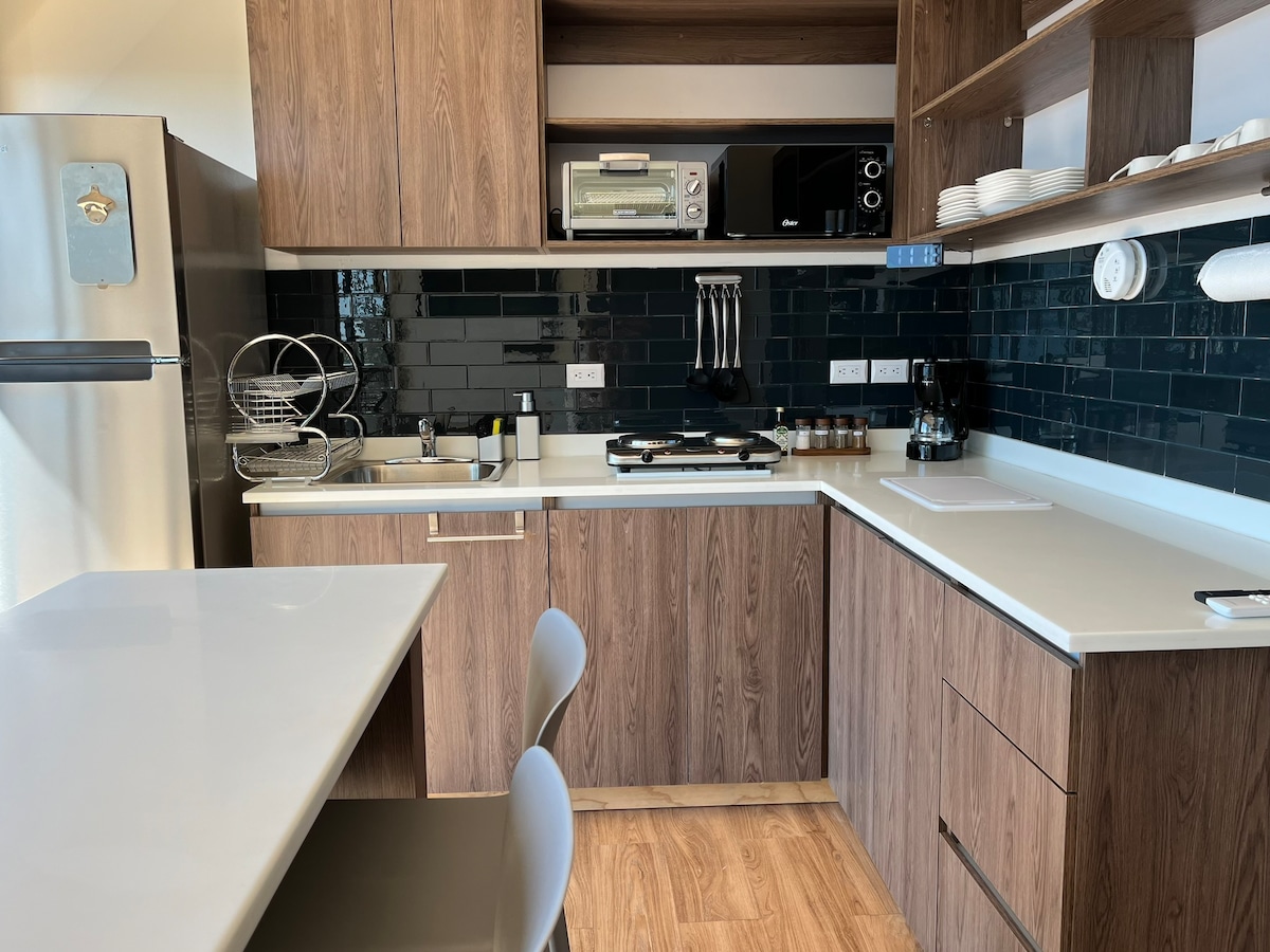 Isipin ang paggising sa isang karanasan sa baybayin sa harap mo mismo, isang perpektong kaibahan sa pagitan ng kalangitan, mga bundok, at dagat. Mag - enjoy ng nakakarelaks na pamamalagi sa aming komportableng loft. Idinisenyo ang moderno at komportableng tuluyan na ito para mabigyan ka ng kaaya - ayang karanasan ilang minuto lang mula sa beach. May kumpletong kusina at balkonahe na may magagandang tanawin ang loft. Malapit ito sa pinakamagagandang restawran, shopping center, at 4 na minuto lang mula sa Surf City. Ito ang perpektong lugar para sa nakakarelaks na bakasyon!