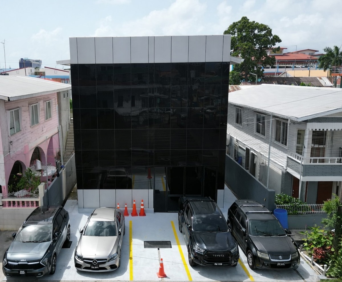 Ang apartment ay puno ng lahat ng mga modernong amenidad kabilang ang: Air conditioning, mga panseguridad na camera sa labas, mainit at malamig na shower, washer/dryer, panlabas na upuan, paradahan at awtomatikong switch sa backup na kuryente. Sa pamamagitan ng mga fast food restaurant, supermarket, at transportasyon na malapit sa iyo, maaalala mo ang iyong pamamalagi. Nagbibigay din kami ng impormasyon tungkol sa mga lokal na tour at mga tunay na opsyon sa pagkain sa Guyanese.