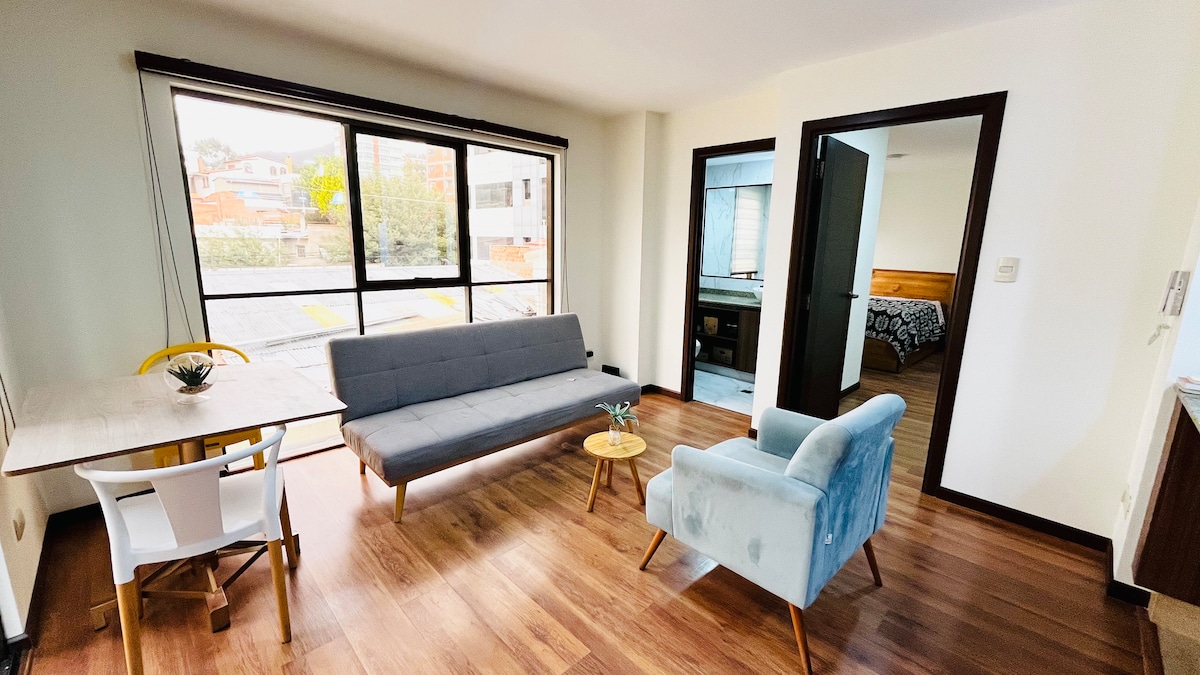 Isang silid - tulugan na apartment na may pribadong terrace sa Sopocachi. Mag - enjoy ng pambihirang pamamalagi sa magandang pribadong apartment na may isang kuwarto na ito, na idinisenyo para mag - alok sa iyo ng kaginhawaan, init, at katahimikan. Matatagpuan sa Sopocachi, isa sa pinakaligtas at pinaka - sentral na lugar ng La Paz, mapapalibutan ka ng mga cafe, restawran, bar at galeriya ng sining, na may madaling access sa pampublikong transportasyon at dalawang bloke lang mula sa Plaza Avaroa at Plaza España.