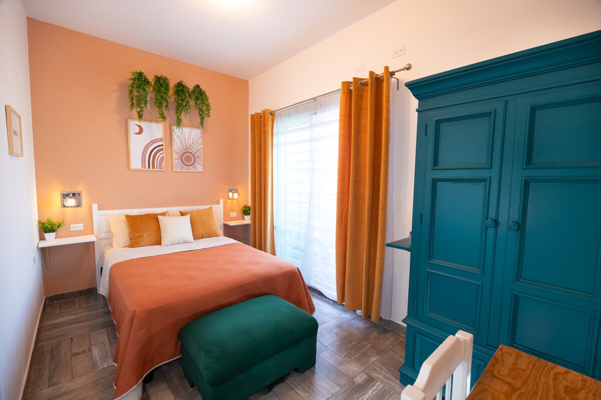 Ang Suite Tamarindo ay isang komprehensibong studio apartment na matatagpuan sa isang complex ng 5 apartment. Matatagpuan sa 2 palapag, mayroon itong queen bed, smart TV, wifi, air conditioning, closet space, kumpletong kusina, at kumpletong marangyang banyo. Isinara na ng complex ang paradahan. Matatagpuan ito sa isang tahimik na kapitbahayan at malapit sa boardwalk at airport (10 minuto sa pamamagitan ng kotse). Sa 600 m ay may perpektong beach para maglakad at panoorin ang paglubog ng araw. Ibinabahagi ang paggamit ng pool.