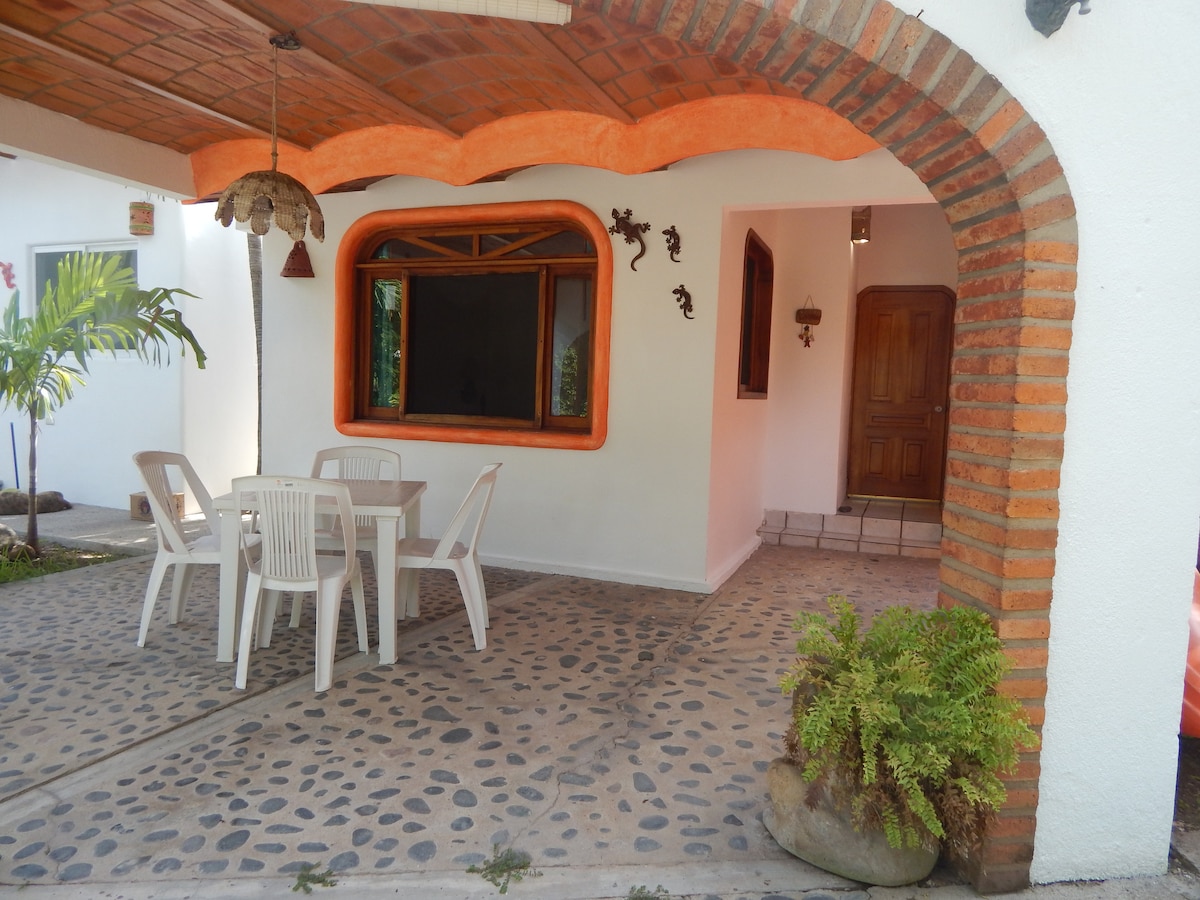 Matatagpuan ito sa residential area, na nilagyan ng TV at WIFI kitchenette, lahat ay may pinakamataas na kalidad, 5 minutong lakad papunta sa beach. Bago ang mga dulo ng mga kagamitan. Isang maigsing lakad ang maglalagay sa iyo sa beach at malapit sa bayan ng Guayabitos. Magagandang tanawin, malugod kang tinatanggap sa aming hiwa ng paraiso. Nilagyan ng kitchenette, refrigerator, microwave, at TV na may WIFI.