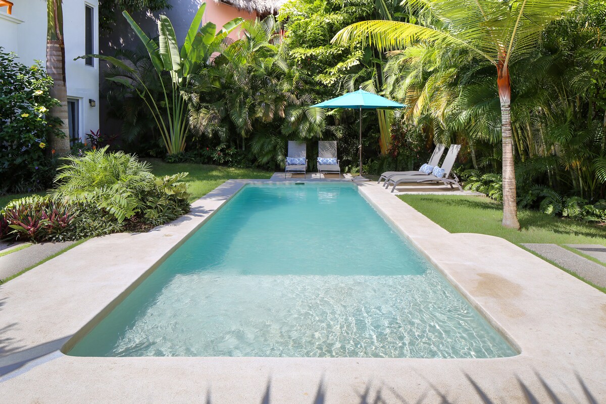 Ang marangyang jungalow na ito ay isang magandang bagong 1 silid - tulugan, sa magandang kapitbahayan sa timog ng Sayulita. Ito ang perpektong sukat para sa mag - asawa o maliit na pamilya (2 may sapat na gulang at 2 bata). 8 minutong lakad lang ito papunta sa plaza ng bayan at sa beach. Masiyahan sa mga ibon ng hangin at kagubatan mula sa iyong pribadong duyan o laze sa tabi ng saltwater waterfall pool at lounge.