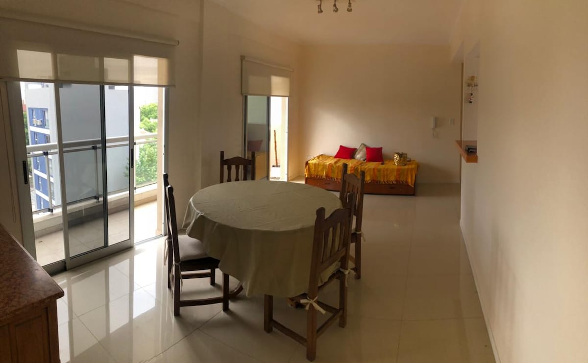Magandang lokasyon. 20 metro mula sa number one mall ng La Plata. Refrigerator na may freezer, kusina, kumpletong pinggan, washing machine, 32" Smart TV, apat na radiator, dalawang high-power na bentilador, aparador, hapag‑kainan, breakfast bar, anim na upuan at dalawang stool, clothesline, double bed at sofa bed sa sala. Mga blackout curtain. Walang bayad na paradahan sa kalye. Karaniwang may availability at lilim buong araw. HINDI ANGKOP PARA SA MGA KOMERSYAL NA AKTIBIDAD O ALAGANG HAYOP.