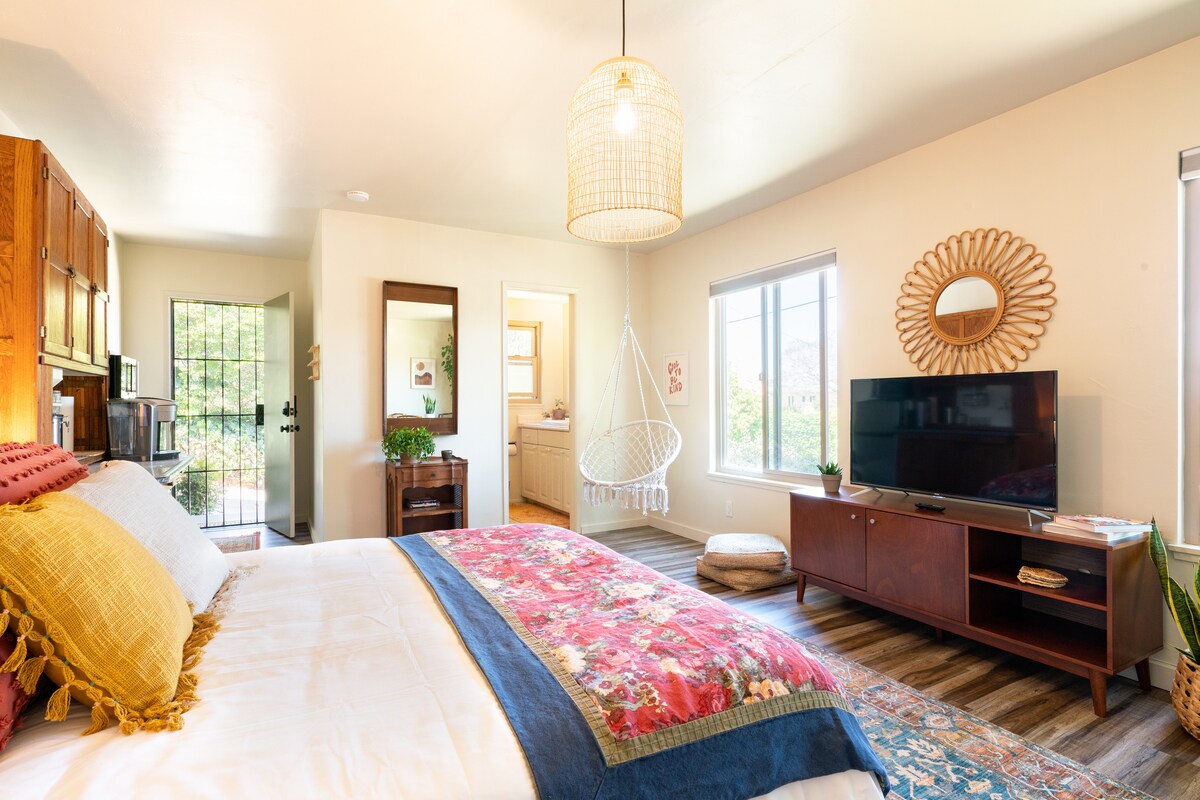 Matatagpuan 1 bloke mula sa Sunset Cliffs Natural Park. Panoorin ang mga kamangha - manghang sunset araw - araw at mag - yoga sa mga bangin na nakaharap sa karagatan! Ang garden studio ay komportable, maganda, at gumagamit kami ng mga likas na produkto para sa paglilinis, atbp. Bata/baby - friendly din kami. Matatagpuan kami 3 milya mula sa Seaworld at malapit sa Ocean Beach, Pt. Loma, Cabrillo Light House, downtown San Diego, Pt. Loma Nazarine University.