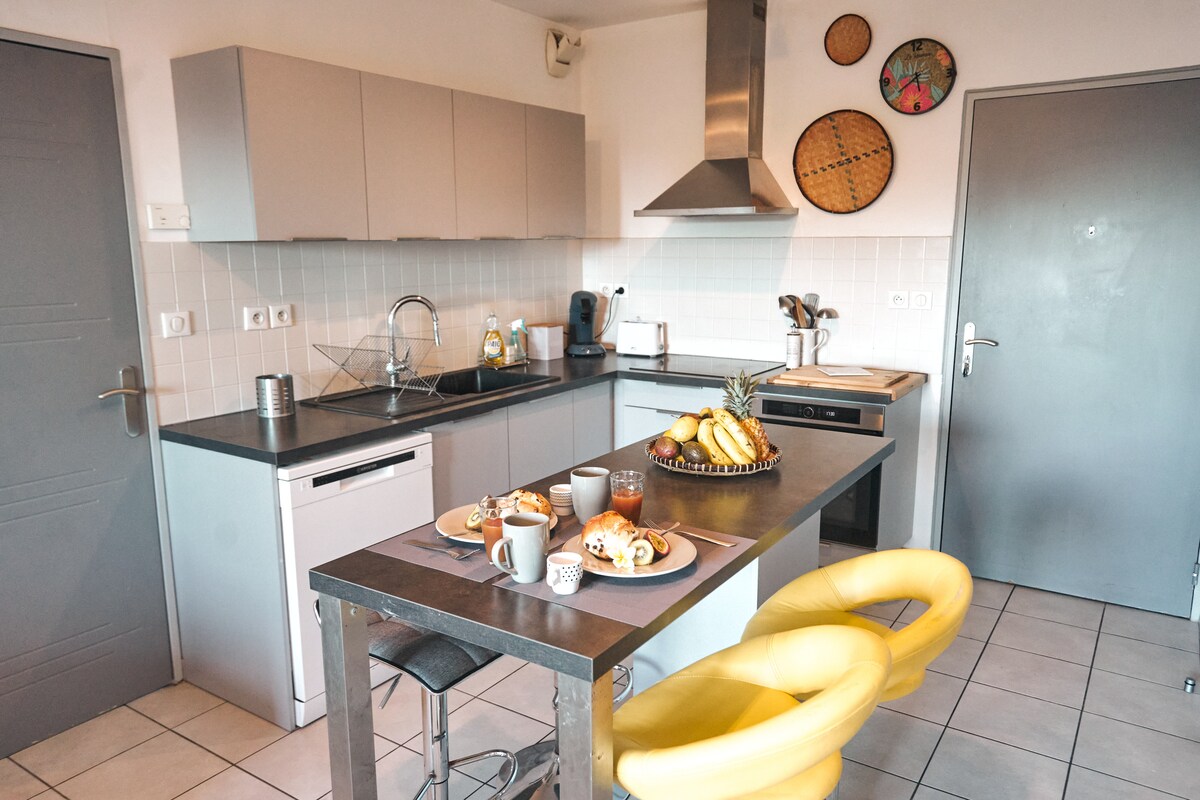Welcome sa zot! ☀️ Halika at gastusin ang iyong pinakamahusay na pamamalagi sa apartment na ito sa isang pribado at ligtas na tirahan. Matatagpuan sa gitna ng Saint - Pierre, malapit ka sa lahat ng amenidad at aktibidad: 15 minuto ang 🧺 layo ng fairground market, at 10 minutong lakad 🏖️ ang layo ng beach. Ang lugar na ito ay ang perpektong base para sa pagtuklas sa ligaw na timog: ang bulkan 🌋 at Grand 🏞️ Galet waterfall ay 1 oras na biyahe ang layo, at ang Cilaos Circus ⛰️ ay 1.5 oras ang layo sa pamamagitan ng kotse.