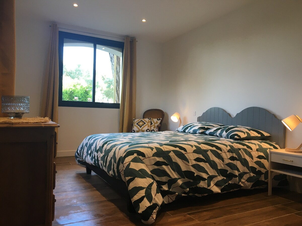 Nag - aalok kami ng 2 naka - air condition na kuwarto sa aming villa na maingat naming ibinabahagi sa aming mga bisita: 1 silid - tulugan sa itaas, 140 higaan (sahig na inookupahan lang ng aming mga bisita) karagdagang espasyo para sa mga bata sa tabi ng pangunahing silid - tulugan at 1 attic bedroom, na may air conditioning na may 1 malaking higaan na 140 para sa mga tinedyer o may sapat na gulang Ika -2 silid - tulugan sa unang palapag, higaan ng 160 para sa mga may sapat na gulang. May sariling banyong en - suite ang bawat kuwarto. Nagbu - book para sa 2 tao na may pribadong 1 kuwarto lang