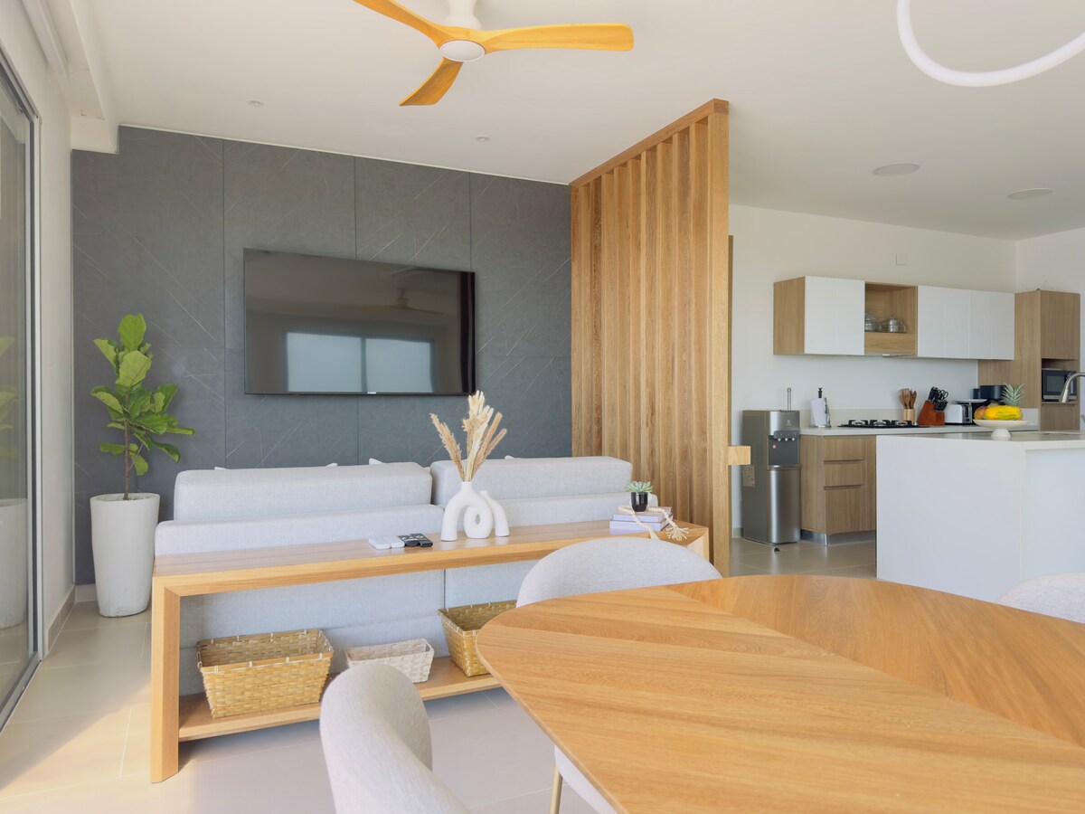 Tangkilikin ang kagandahan at katahimikan sa modernong apartment na ito na matatagpuan sa eksklusibong lugar ng Serena del Mar, sa hilaga ng Cartagena. Napapalibutan ng kalikasan at mga berdeng lugar, ito ang perpektong kanlungan para sa mga gustong magrelaks at magdiskonekta. Mga 5 minuto lang 🚘 mula sa magagandang beach ng Manzanillo.