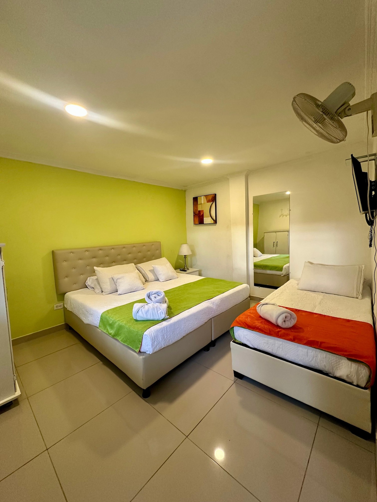 mahanap sa aming kuwarto sa hotel ang lahat ng kaginhawaan at katahimikan Bukod pa rito, ilang hakbang ang layo mo mula sa mga kaakit - akit na tanawin ng Valle del Cocora at sa kolonyal na kagandahan ng Salento. I - explore ang mga batong kalye nito, i - enjoy ang masasarap na lokal na lutuin, at isawsaw ang iyong sarili sa init ng mga tao nito. Naghahanap ka man ng romantikong bakasyunan o solong paglalakbay, ang aming kuwarto ay ang perpektong batayan para sa iyong karanasan sa Salento. 150 metro kami mula sa downtown.