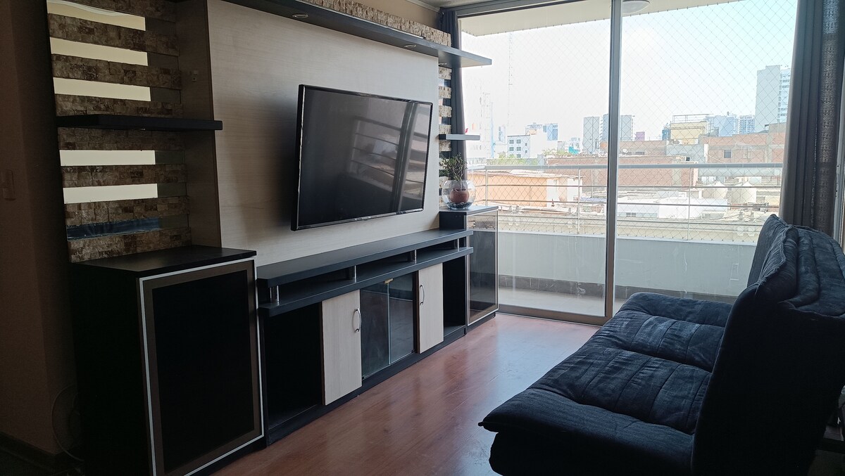 **Bagong duplex, MALAPIT SA San Isidro, perpekto para sa turismo o negosyo** 100% kumpleto sa kagamitan, mayroon itong magagandang common area tulad ng infinity swimming pool, gym at lounge area sa rooftop, na may nakamamanghang tanawin ng Financial Center. Malapit sa Mariscal Castilla Park. Central lokasyon sa isang residential lugar ng Lince, perpekto upang pumunta sa iba pang mga distrito tulad ng Miraflores, Barranco, Lima Centro. Malapit sa mga mall, lugar ng libangan at restawran kung saan masisiyahan ka sa aming kultura sa pagluluto.