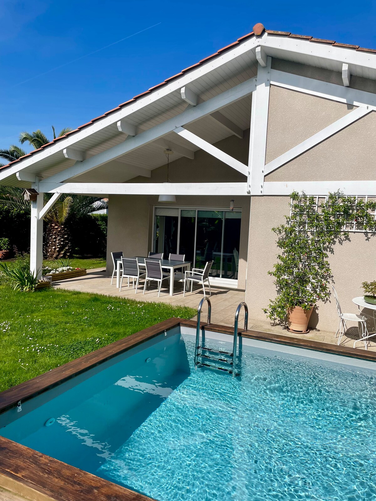 500 metro mula sa mga beach at sentro ng lungsod, na matatagpuan sa pagitan ng lawa at karagatan, ang villa Brise de pin ay matatagpuan sa isang magandang bakod na hardin ng 2000m2 na nakatanim ng mga pine at cork oak. Pinalamutian ito ng pinainit na salt pool mula Mayo hanggang Oktubre. Sa pamamagitan ng 5 silid - tulugan, 3 banyo at mataas na antas ng mga serbisyo at kagamitan (poolhouse, plancha, bowling, bisikleta...), ang bahay ay maaaring tumanggap ng 8 hanggang 10 tao at mangako ng pamamalagi sa anumang punto na hindi malilimutan malapit sa mga surf spot