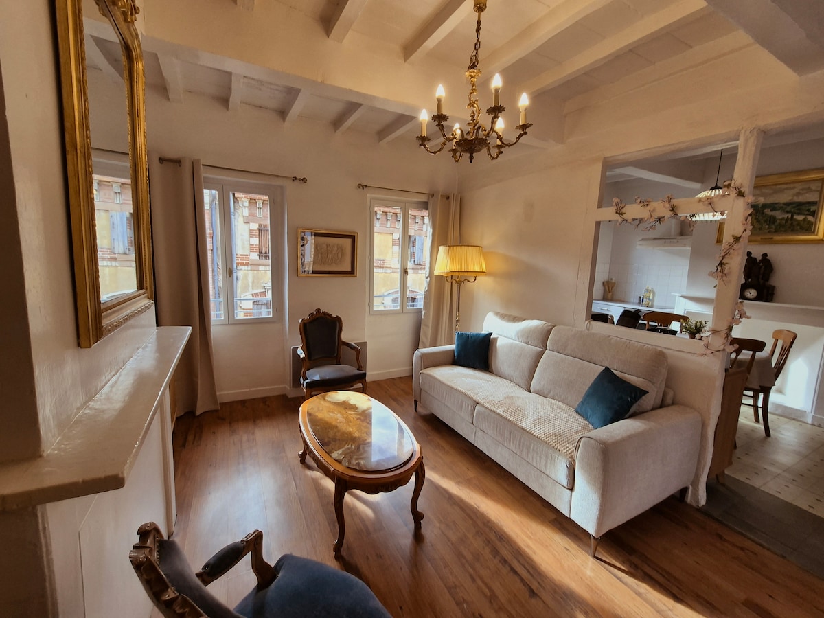 Apartment sa gitna ng lungsod ng Albi, sa Place du Vigan. Maraming pagka - orihinal, para magsaya ka sa aming magandang lungsod ng Albi. Apartment na kumpleto ang kagamitan, sa ikatlo at tuktok na palapag: kusina na kumpleto sa kagamitan, silid - kainan sa paligid ng magandang apoy na gawa sa kahoy, lugar ng mesa, cooconing lounge, na may sofa bed at magandang orihinal na kuwarto na may banyo at dressing room. May naka - air condition na tuluyan, at may WIFI. Ito ang perpektong lugar!