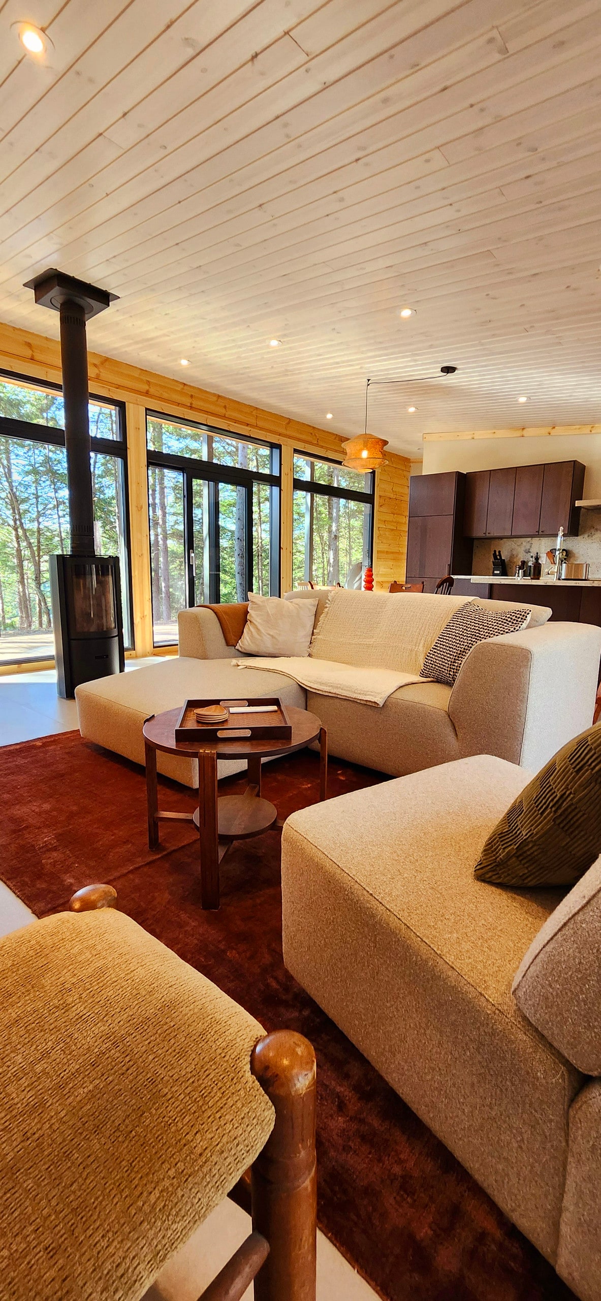 Maligayang Pagdating sa Laếine! Ang komportable at modernong cabin na ito ay may lahat ng kailangan mo para makapagrelaks at makipag - ugnayan sa kalikasan. Tangkilikin ang isang baso ng alak na may tunog ng isang pumuputok na apoy sa kahoy na nasusunog na fireplace. Tunghayan ang kagubatan sa pamamagitan ng nakapalibot na sahig hanggang sa mga bintana sa kisame. Magrelaks sa pribadong outdoor cedar barrel sauna. Komplimentaryo ang mga natural na produkto sa pag - aalaga sa sarili, panggatong, sabon sa paglalaba, at high - speed Wi - Fi. Umaasa kami na magugustuhan mo ang aming maliit na cabin ng mga bintana tulad ng ginagawa namin:)