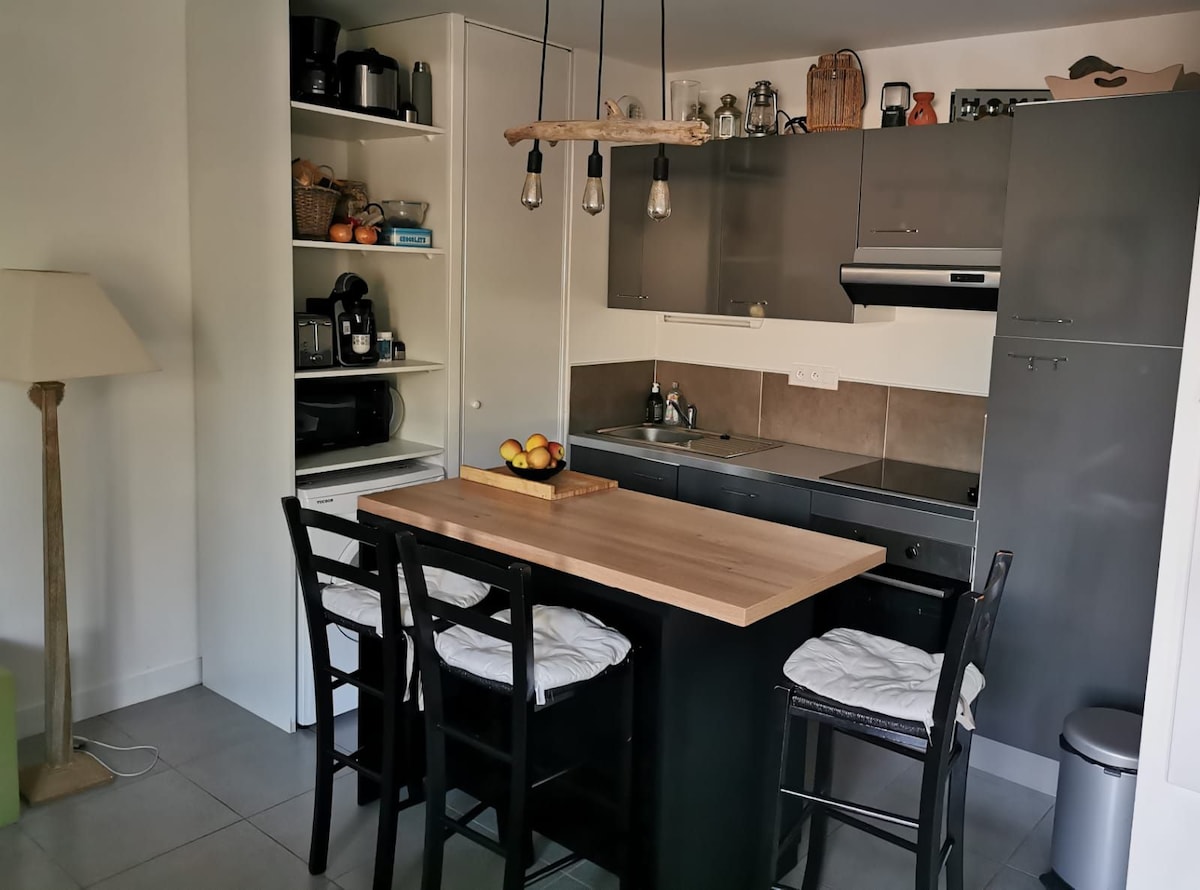 25 m2 na apartment na may 2 kuwarto (may maliit na hiwalay na kuwarto) na may pautang na bisikleta, nasa ikalawang palapag, nasa gilid ng hardin. May mga linen (mga sheet/tuwalya). Residensyang "Pierre et vacances" na may mga swimming pool, direktang access sa beach (50 m), at malapit sa mga amenidad. May dishwasher at washing machine sa tuluyan. Masisiyahan ang mga bisita sa balkonahe na nakaharap sa timog - silangan 2 swimming pool na bukas mula kalagitnaan ng Hunyo hanggang kalagitnaan ng Setyembre