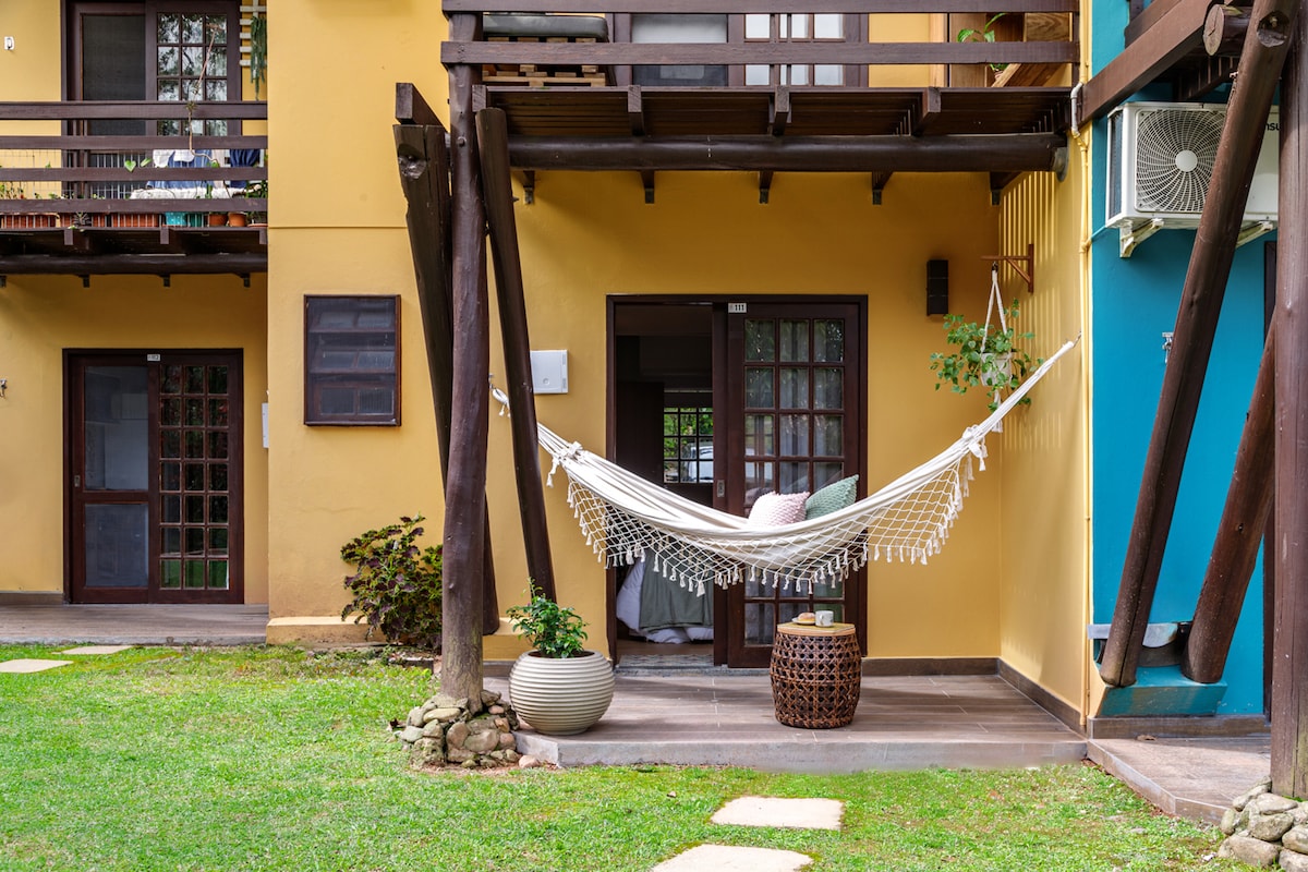 Nag - aalok ang aming kaakit - akit na nayon ng Vila Oceana ng komportableng pamamalagi sa isang compact ngunit natatanging kapaligiran. -> Mabilis na internet -> Aircon -> indibidwal na patyo -> Kumpletong kusina -> Paradahan -> Swimming pool -> Kolektibong laundromat -> Mga bisikleta na matutuluyan LOKASYON: >> 25 minutong biyahe papuntang 🛫 e 🚌 >> 10 minutong biyahe papunta sa mga beach >> 5 minutong lakad papunta sa mga restawran at pamilihan MGA REVIEW: "Magandang lokasyon, madaling pag - check in, malinis, amoy at tahimik." "...ang aming pinakamahusay na pagpipilian ng floripa."