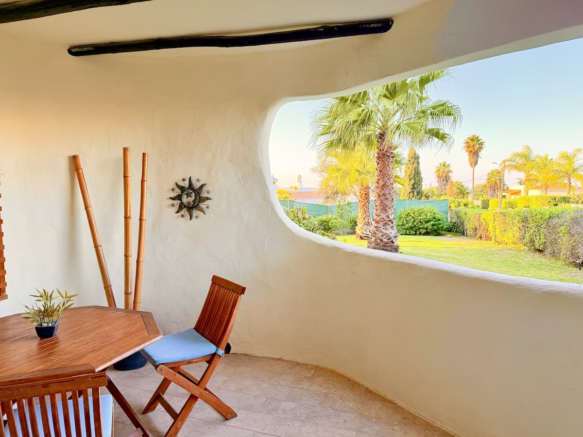 Para sa mga nakakarelaks at confortable na bakasyon! Mainam ang appartment para sa mag - asawa, perpekto para sa isang tao at mainam para sa isang pamilya! Malaki at maaraw na terrace, pool ng komunidad at lugar ng paradahan! 1 min. lakad papunta sa panaderya, golf shop at 5 minutong lakad papunta sa beach.