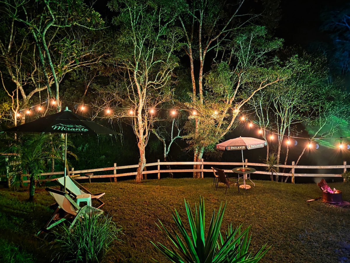 Welcome sa Karanasan sa Pagkakamping sa Rancho Cachoeirinha! Naisip mo na bang makatulog habang pinakikinggan ang nakakarelaks na tunog ng eksklusibong talon na ilang metro lang ang layo sa tolda at magising sa awit ng mga ibon? Isang karanasan sa kalikasan na espesyal na idinisenyo para sa mga magkarelasyon na naghahanap ng kapayapaan, ngunit ayaw sumuko sa kaginhawa at makabagong imprastraktura Live at natural ang soundtrack: ang mga tubig ng magandang talon, ang kaakit-akit na agos ng tubig, at ang ilog na dumadaloy sa luntiang lugar para sa inyong dalawa.