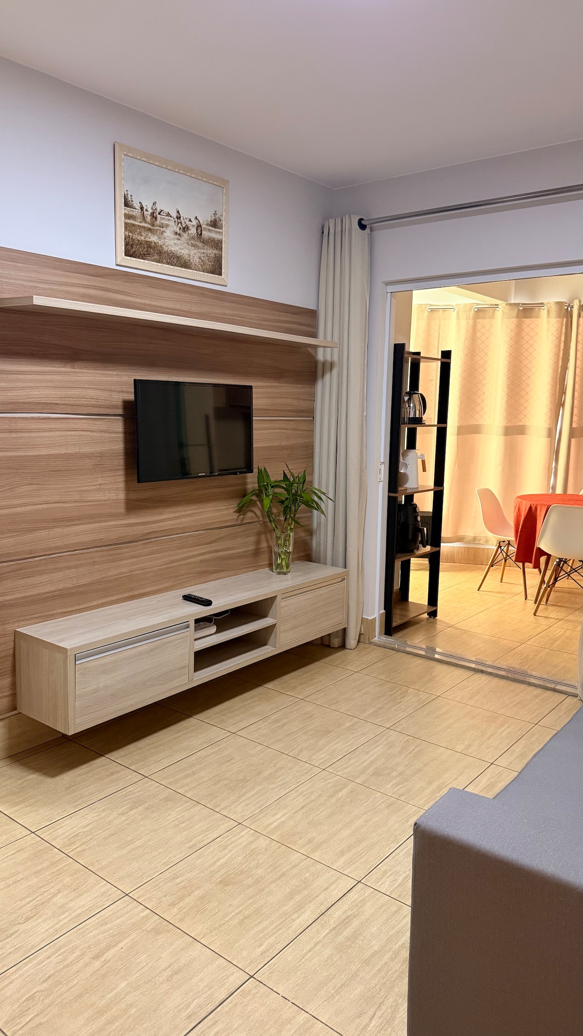Tipunin ang iyong pamilya sa elegante at masiglang lugar na ito na hindi malilimutang sandali ng katahimikan at kasiyahan. Matatagpuan sa isang pangunahing kapitbahayan ng lungsod, malapit sa mga supermarket, restawran, bar, parmasya at isang kilometro mula sa sentro (moonlight market, amusement park). Ang Flat ay may double bed, air conditioning, sofa bed, Smart TV, gourmet balcony na may 2 burner, refrigerator, electric oven, coffee maker, sandwich maker. Kinakailangang magdala ng mga gamit sa higaan, paliligo, at mga personal na pangangailangan.