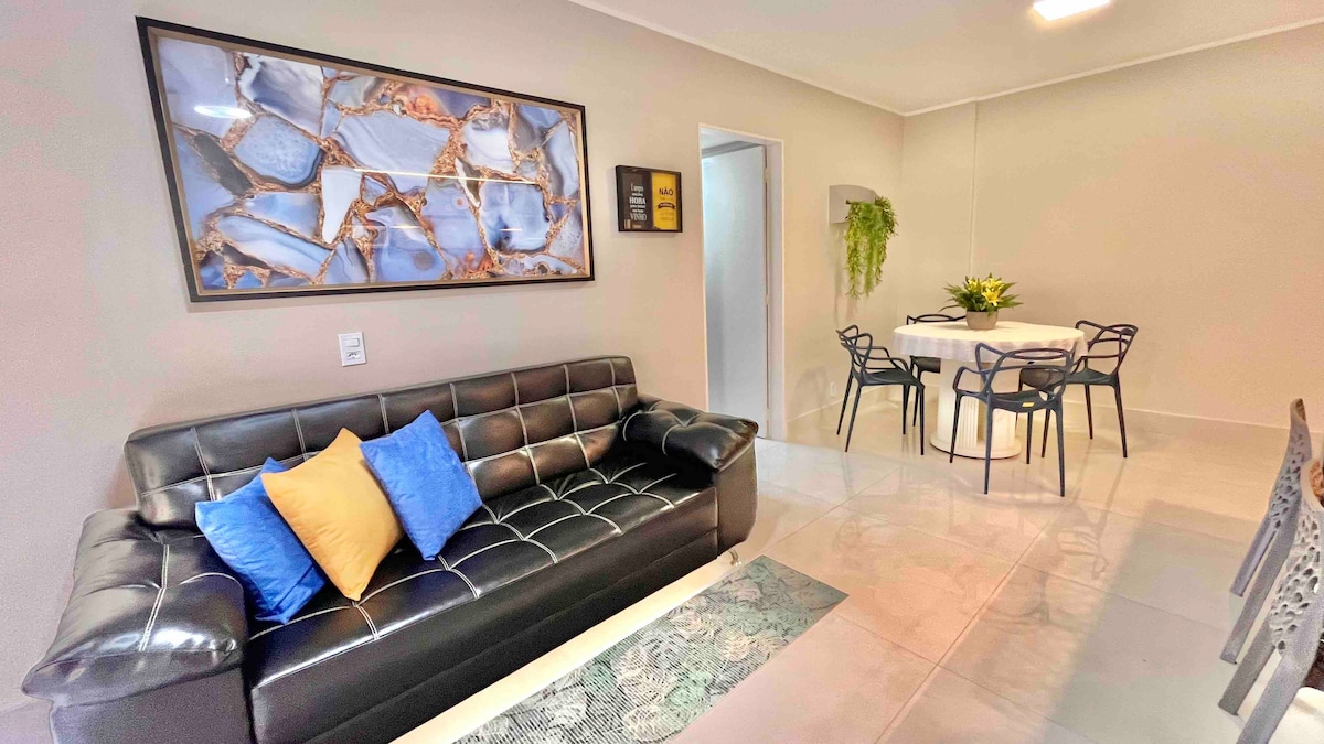 Maligayang Pagdating sa Parque das Águas Quentes Mga Likas na Thermal na 🌟Tubig, Mainit na Pool 🌟 Mamalagi sa magandang 2 - suite na apartment na ito, sa pinakamagandang lokasyon ng Caldas Novas. Ang Apto ay 80 metro kuwadrado, napaka - komportable para sa pamamalagi kasama ng pamilya at mga kaibigan. Mayroon itong kumpletong kusina, kasama ang lahat ng kagamitan. Ang balkonahe ay isang kagandahan, maluwag at may magandang tanawin! 😀 Pribilehiyo ang lokasyon, sa gastronomic stronghold ng mga bar at restawran sa lungsod. Mag - enjoy! 😉