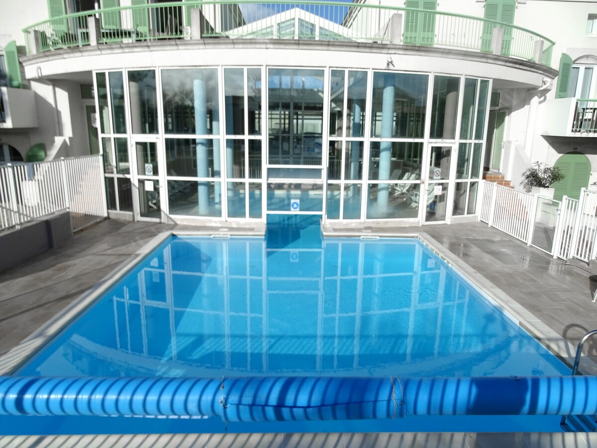 Apt sa unang palapag ng bakasyunang tirahan na may hindi pinainit na pool, bukas depende sa lagay ng panahon. Pinapanatili ⚠️namin ang aming sarili sa labas ng pananagutan kung sarado ang swimming pool. ⚠️ ☆ Mga kobre - kama lang kapag hiniling (€10/higaan) 2 silid - tulugan (1 higaan 160x200 at 2 pang - isahang higaan na 90 nakadikit). Sala na may sofa bed 2 pl. Buksan ang kusinang may kumpletong kagamitan. Banyo na may bathtub at toilet (walang tuwalya). Email Address * Paradahan sa mga ext na lugar o paradahan sa ilalim ng lupa. Libreng access sa gym at pool.