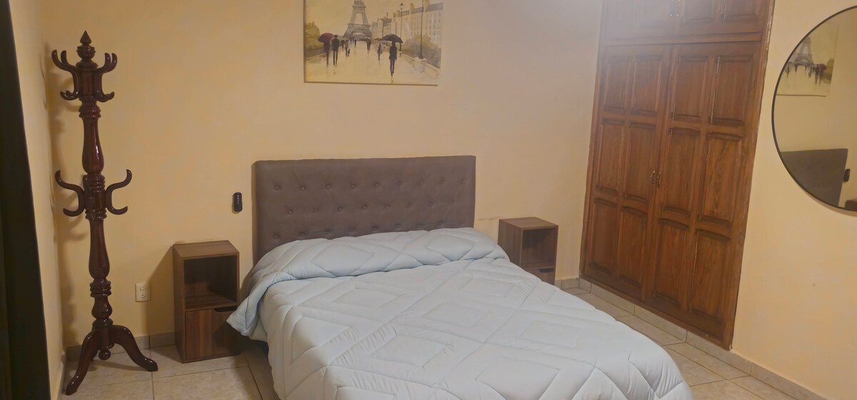 Lahat ng kailangan mo para sa maikli o mahabang pamamalagi. Mayroon itong double bed, kumpletong kusina, kumpletong banyo, desk, Internet ng 500 Megas. Nag - invoice kami.