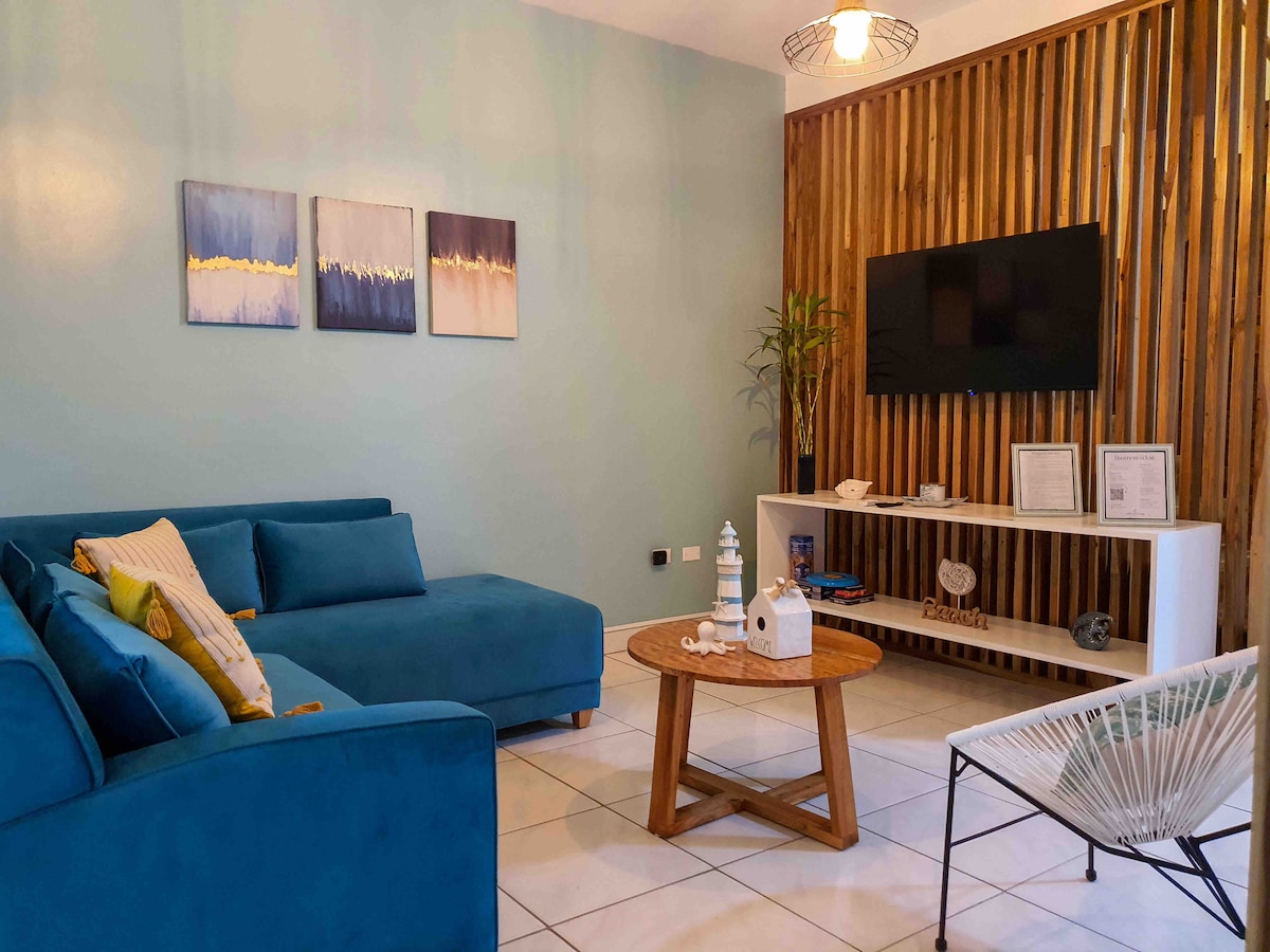 #TheOceanside ang aming tuluyan ay idinisenyo para mabigyan ka ng lubos na kaginhawaan at katahimikan. Ang dekorasyong inspirasyon ng karagatan ay sumasaklaw sa iyo sa isang tahimik at komportableng kapaligiran. Tumatanggap ng 6 na bisita, mainam ang # TheOceanside para sa mga mag - asawa, pamilya o grupo ng mga kaibigan na gustong magbahagi ng mga hindi malilimutang sandali ilang hakbang lang mula sa karagatan.