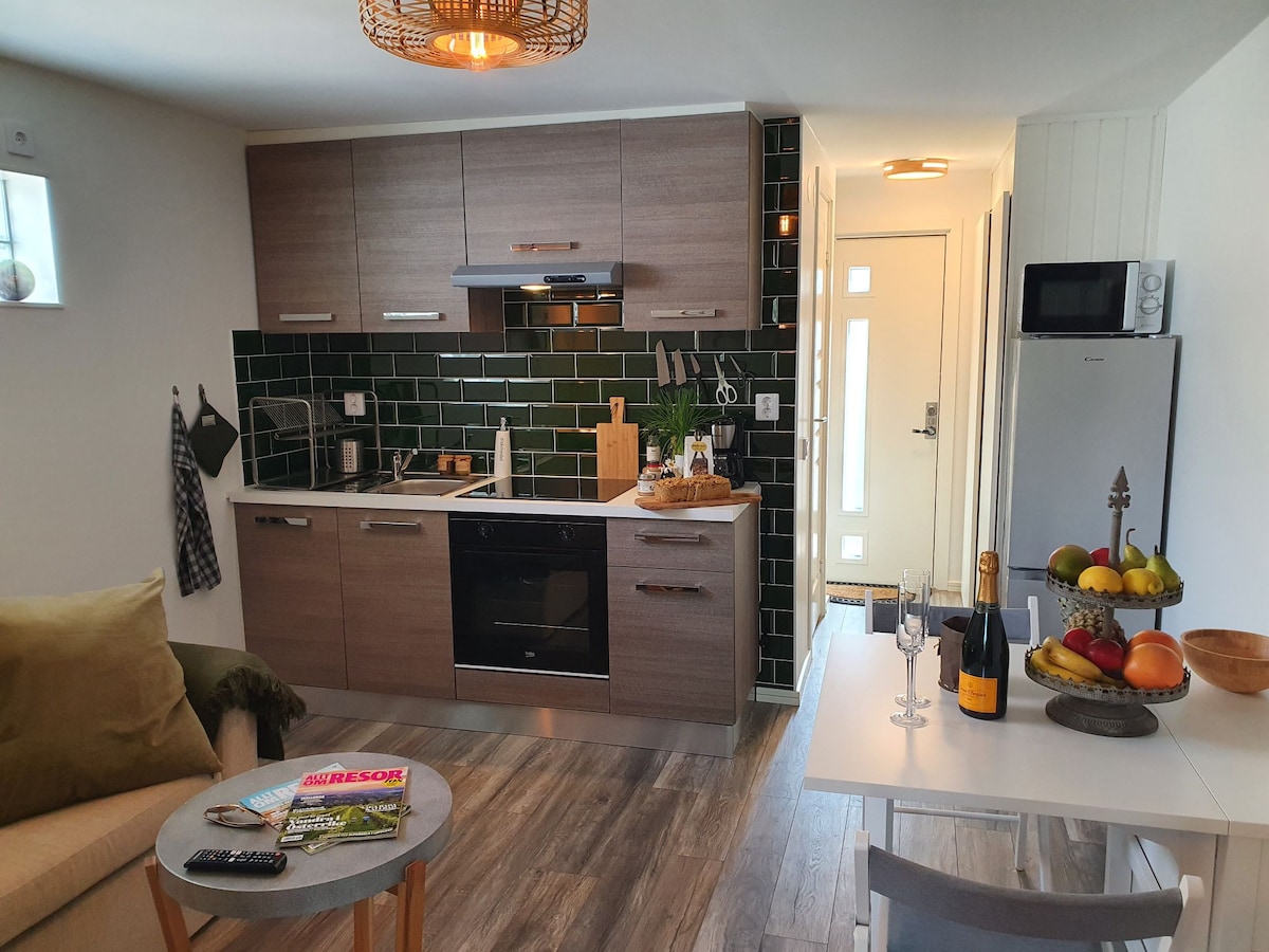 Ganap na bagong apartment na may lahat ng kailangan mo para sa isang mahusay na pamamalagi. Paghiwalayin ang silid - tulugan at isang maliit na kusina na may acess sa isang magandang hardin sa labas mismo ng iyong pintuan. Maigsing lakad lamang ito mula sa pangunahing istasyon ng tren at bus sa Halmstad na may madaling access sa beach at sa sentro ng lungsod. Paligid ng mga supermarket at restaurant o ilang minutong lakad lang ang layo. Libreng paradahan sa labas mismo ng apartment at libreng wi - fi para sa lahat ng aming mga bisita! Maligayang pagdating:) Niklas, Paulina